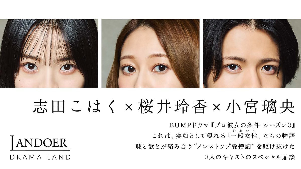 ◼︎2025 08-15◼︎ 𓂊 #志田こはく×#桜井玲香×#小宮璃央 | DRAMA LAND ⎯⎯⎯⎯⎯⎯⎯⎯ BUMPドラマ『#プロ彼女の条件 シーズン3』 これは、突如として現れる 「一般女性」たちの物語 嘘と欲とが絡み合う “ノンストップ愛憎劇”を駆け抜けた 3人のキャストのスペシャル鼎談 landoer.jp/prokanojo_3/ pic.x.com/SWiN8Wk8YJ