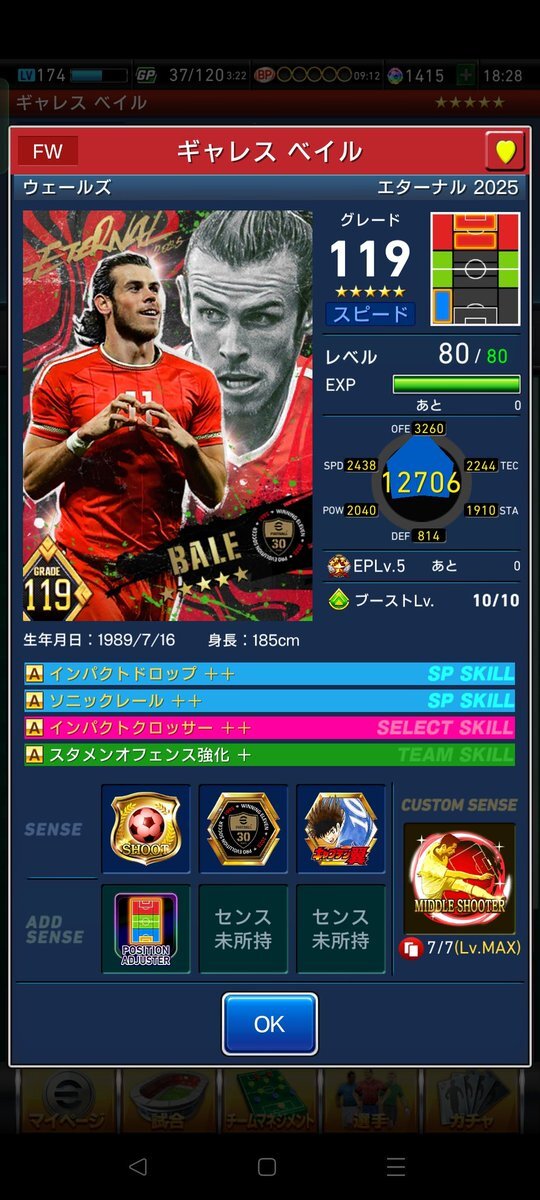 今日もお疲れ様でした 垢3 前回のマテウスライジング 特効欲しくて、LBP突っ込んで プレイメイカーマクアリステル 完凸してしまったので ようやくベイルが完凸 センスもまずまずだし ポジションアジャスター持ち 大活躍を期待します! #ウイコレ #ベイル pic.x.com/Ojrv9RL31n