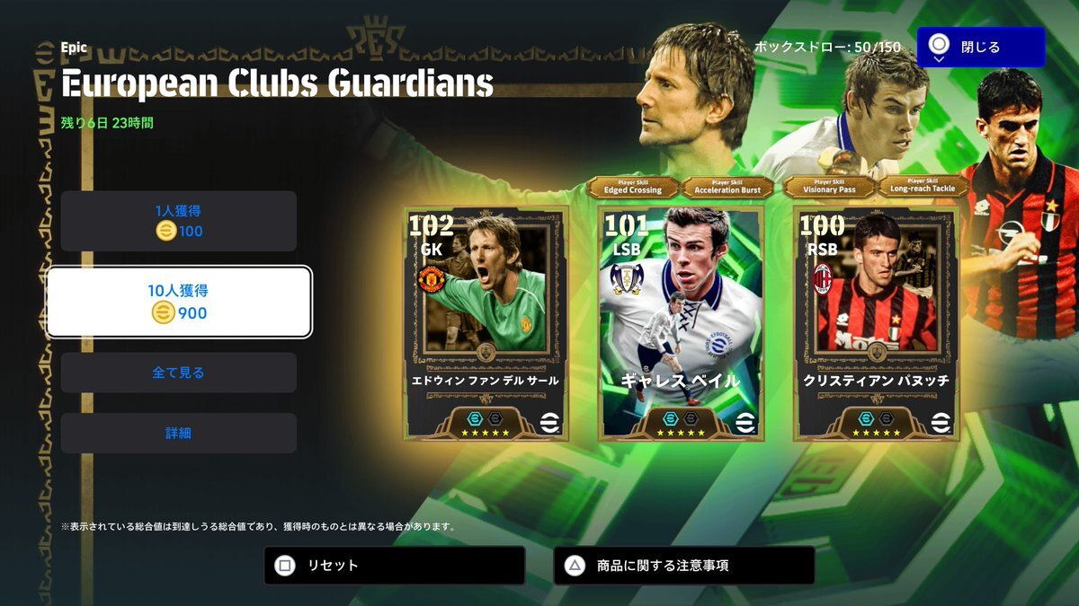🆕エピックガチャ[1️⃣5️⃣0️⃣BOX] 【European Guardians編】 🇳🇱#ファンデルサール(攻撃的GK)Lv3️⃣0️⃣☣️🈚️ 🏴#ベイル(攻撃的SB)Lv3️⃣3️⃣☣️AB&EC 🇮🇹#パヌッチ(攻撃的SB)Lv3️⃣5️⃣☣️VP&LRT 🆕登場2名+SBベイル 特に🧊🐇の挙動がどーなるか気になります👀 #EPIC #eFootballアプリ #eFootball #イーフト pic.x.com/q3chWAHHQi