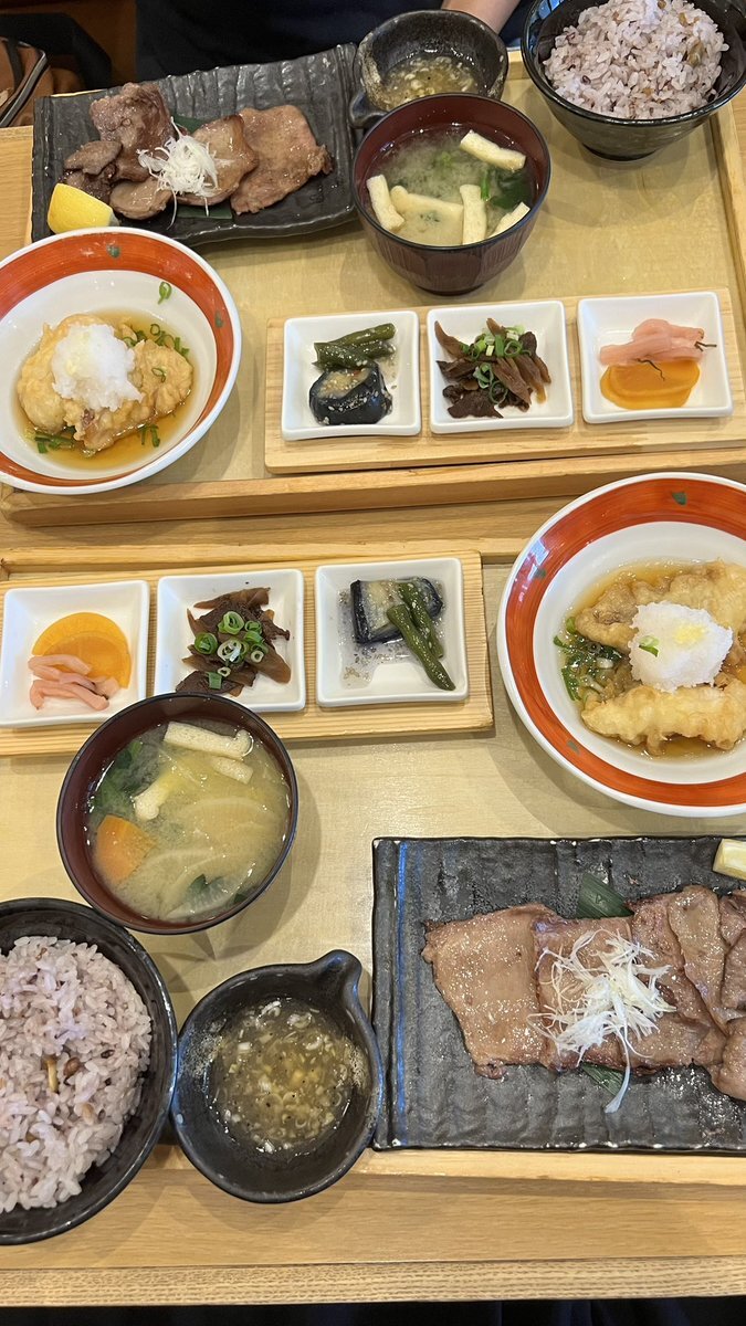 田園定食 牛タンも お魚も美味しかった😋 デザートに アールグレイ ブーケ&ティー フラペチーノ 甘過ぎず 美味(*´༥` *) #どきオッソと一緒 #ペケーニョどきと一緒 pic.x.com/HhAk92qokk