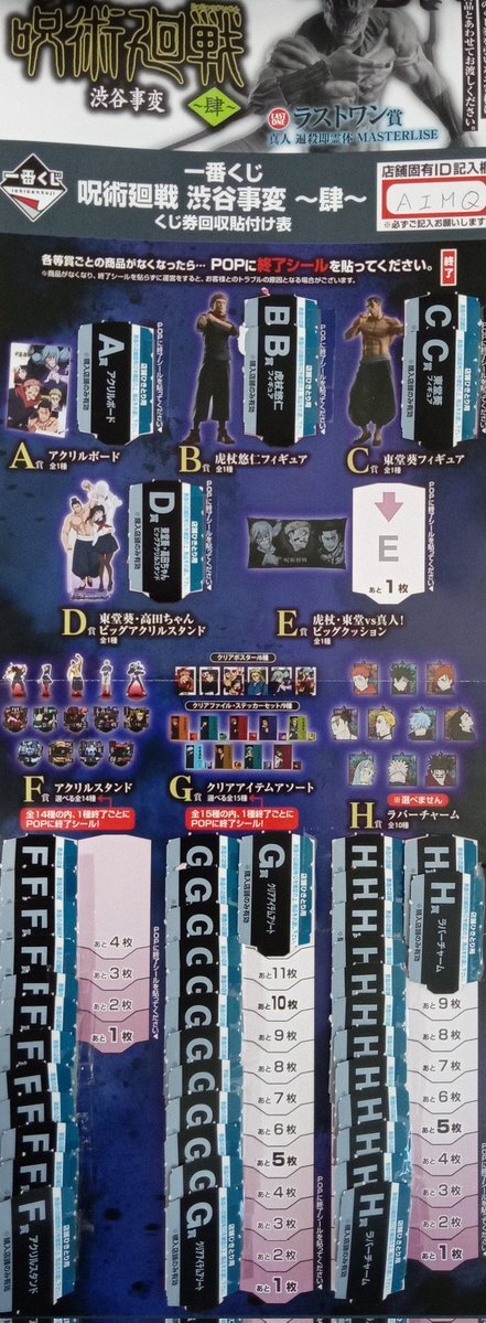 ✨一番くじ在庫情報✨ ◎#呪術廻戦 渋谷事変 ~肆~⇒🉐50%OFF(25回) E賞 虎杖・東堂vs真人!ビッグクッション F賞 アクリルスタンド G賞 クリアアイテムアソート ◎#ペコちゃん のお菓子シリーズ⇒🉐80%OFF(15回) C賞 ポーチ D賞 ダイカットタオル #文真堂書店 #文真堂書店大間々店 pic.x.com/Rau6PxkkrL