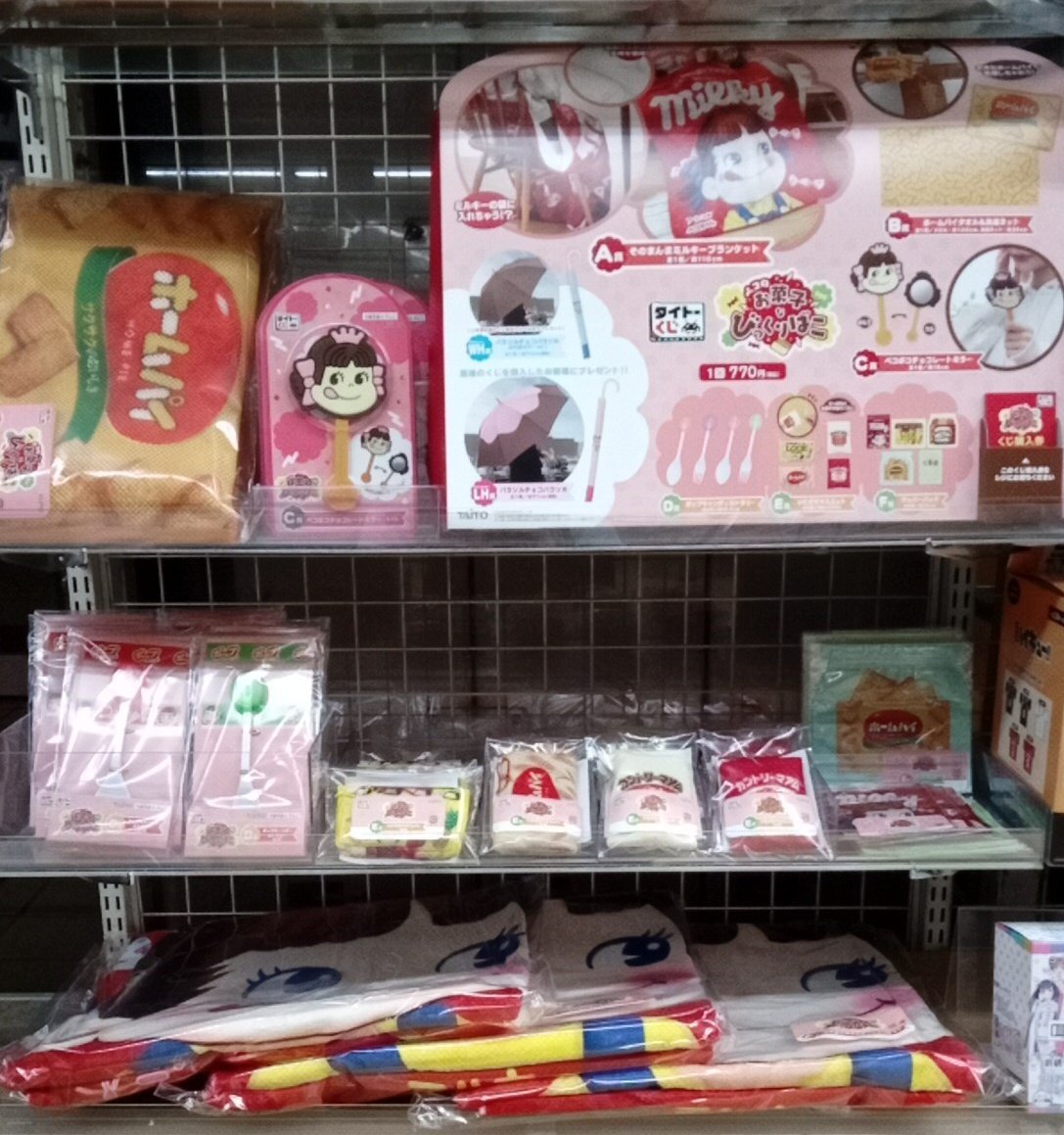 くじ販売情報🎯 #タイトーくじ 【ペコのお菓子なびっくりばこ】 好評販売中です✨ そのまんまミルキーブランケットや ひっぱるとお菓子が出てくるいただきマスコットなど 豪華ラインナップです‼️ #不二家 #ペコちゃん 皆様のご来店お待ちしております📷 ✨ pic.x.com/V1HMFJ4l72