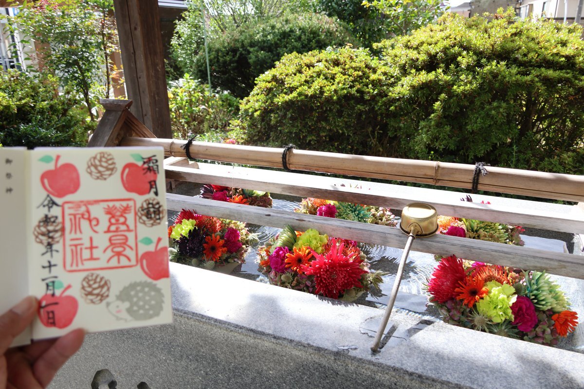 #月詣 #月替わり御朱印巡り 十三夜御朱印 仕事と子どもの守り神 #滑川神社 楓の紅葉が始まった滑川神社へ 月参り 手水には楓の紅葉が飾られ 和傘が拝殿前に飾られています 月替わり御朱印 上旬の絵柄これから赤く染まっていくそうです 十三夜の御朱印も出されていて 併せていただきました #ホトカミ pic.x.com/CtIXtJ0kBc