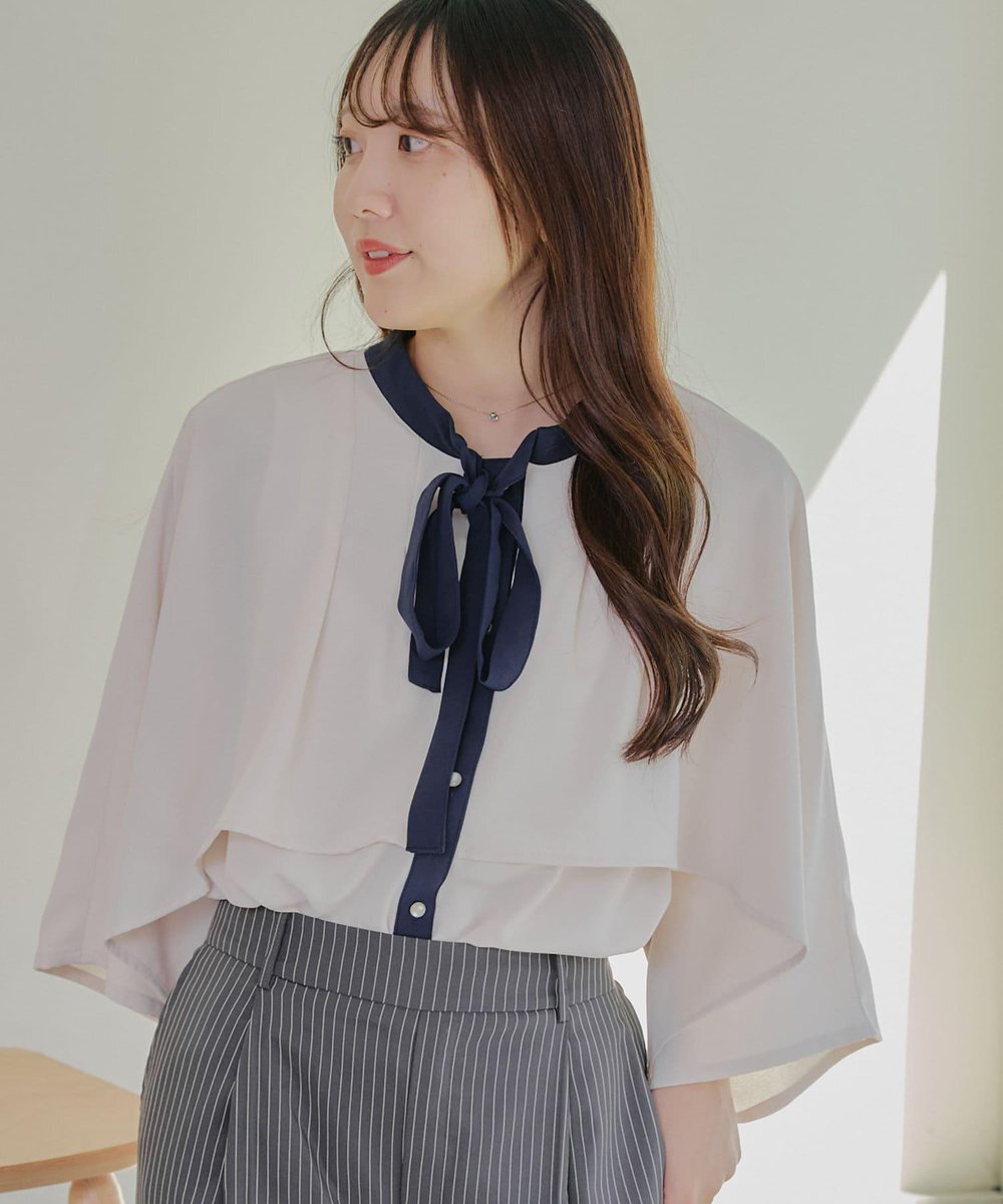 配色とリボンがポイントのケープデザインブラウス。着回し力抜群でオフィスにも◎。軽やかな素材感で夏まで着用可能。 #PAL #Remindmeandforever #ケープブラウス #配色デザイン #ボウタイブラウス #着回し click.linksynergy.com/link?id=aat2aY… pic.x.com/3Zc93YpnGq