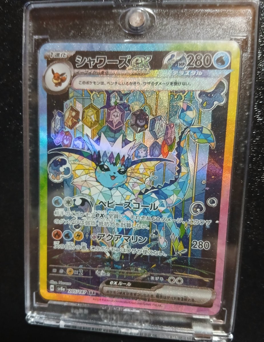 今度はバラ2パックからシャワーズが!テラスタルフェスが2パック買うだけでブイズSAがもらえる魔法のパックと化している…w #ポケカ #テラスタルフェスex #ポケカ好きと繋がりたい pic.x.com/QoWL9Zk9YS