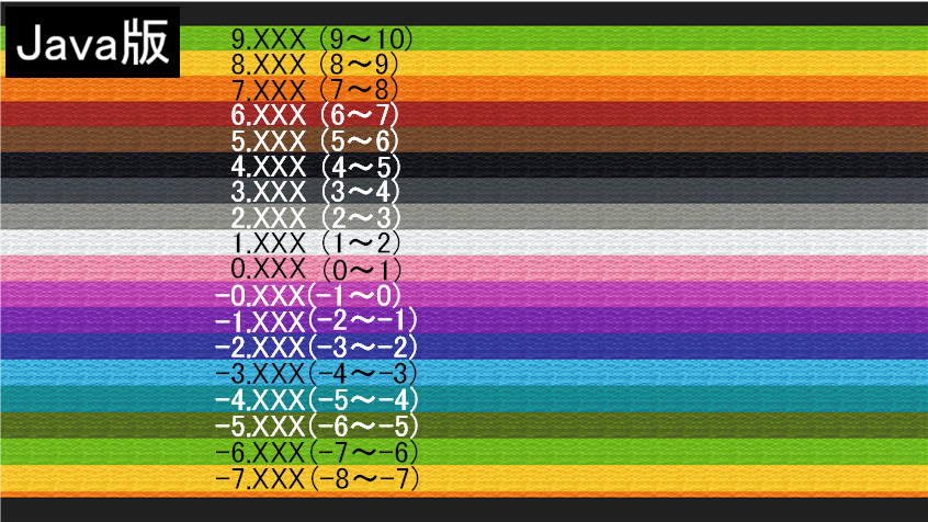 統合版とJava版で座標の区切り方が違うの初めて知った! 例えば10マス間隔で松明を置くとき、統合版では10、0、-10、-20、…でいいのに対して、Java版では10. XXX、0. XXX、-9. XXX、-19. XXX、…としないといけないので、注意が必要ですね。 #Minecraft #マイクラ #マイクラ統合版 #マイクラJava版 pic.x.com/TlIclsDUpw