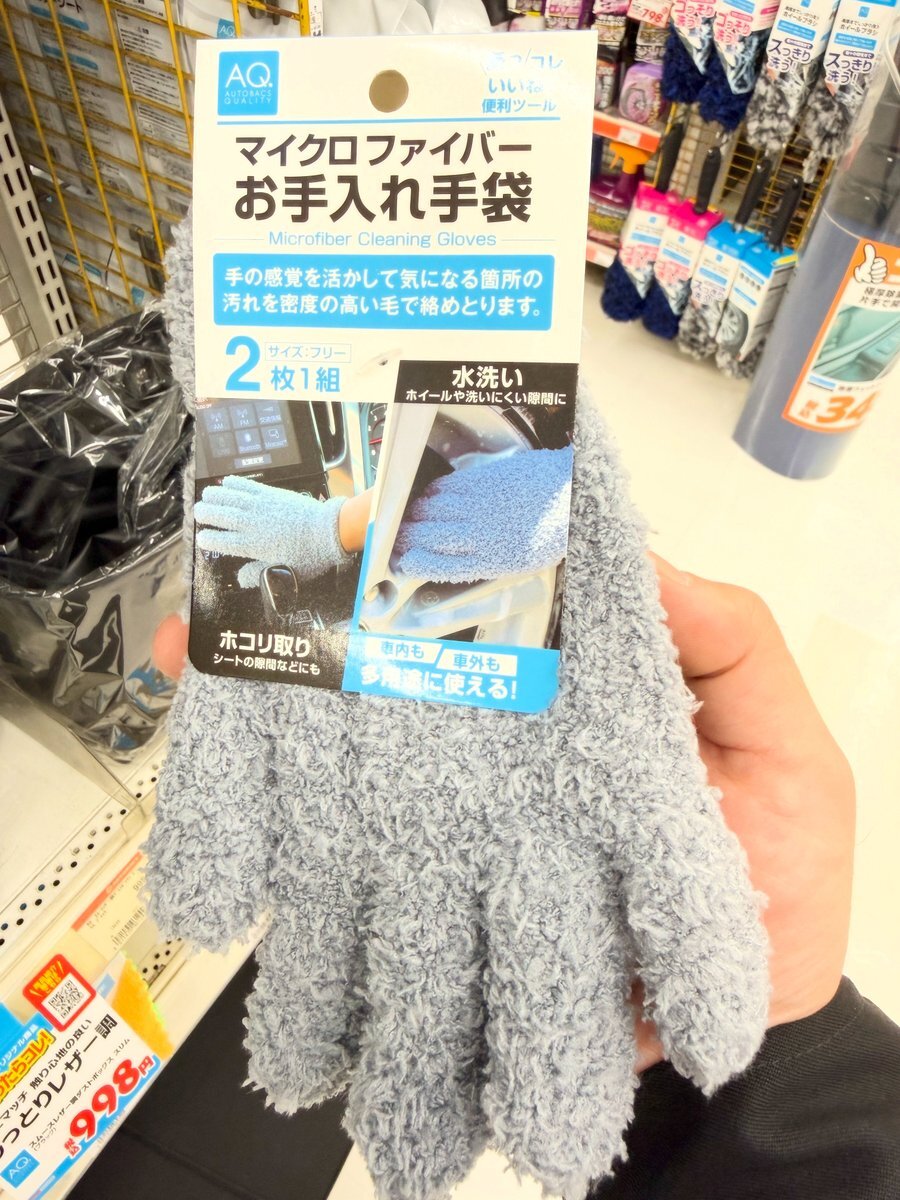 なんだぃ手袋かよ🤔 いや、待て…マイクロファイバーだ😳 手袋型の方が掃除しやすい箇所もありますな😮 使い終わったら軍手みたいに丸めてダッシュボードに入れられますな😙 #マイクロファイバー #掃除 #手袋 #ダッシュボード #オートバックス pic.x.com/a7D9nADnBd