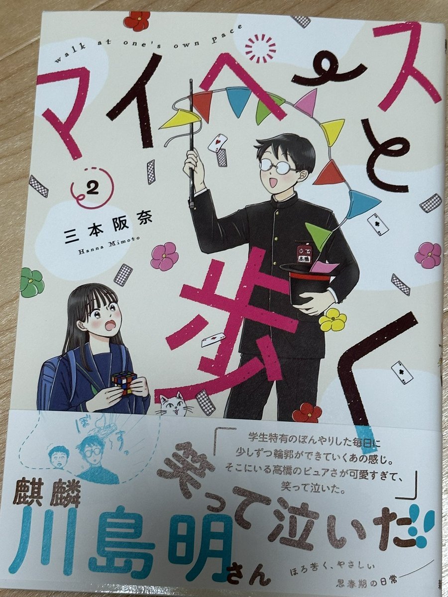 #マイペースと歩く 2巻 マイペースな高橋と心地良い関係を築けてる近藤と、席が近くて仲良くなった良いキャラしてる橘と新田。お互いに影響し合う学校生活がとても好き。 実は結構みんなに好かれてる高橋が良い。修学旅行はまだ続くし、まだまだ色々ありそうで楽しみ。 amzn.to/3JzTHmK