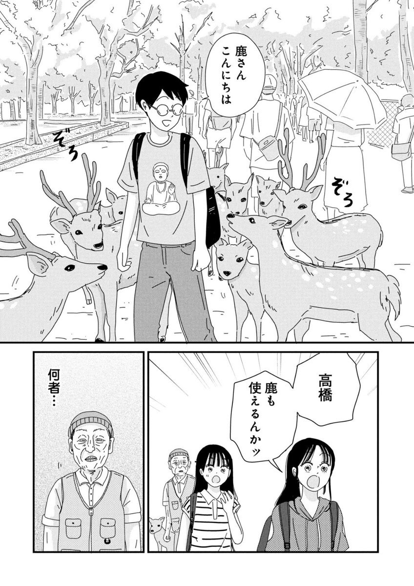 マイペースと歩く - 三本阪奈 / 第12話「やさしさ」 | くらげバンチ #マイペースと歩く #三本阪奈 [ kuragebunch.com/episode/255146… ] なんか知らんが、鹿の囲まれて服をグチャグチャ甘噛みでヨダレでベチョベチョにされたっけ。