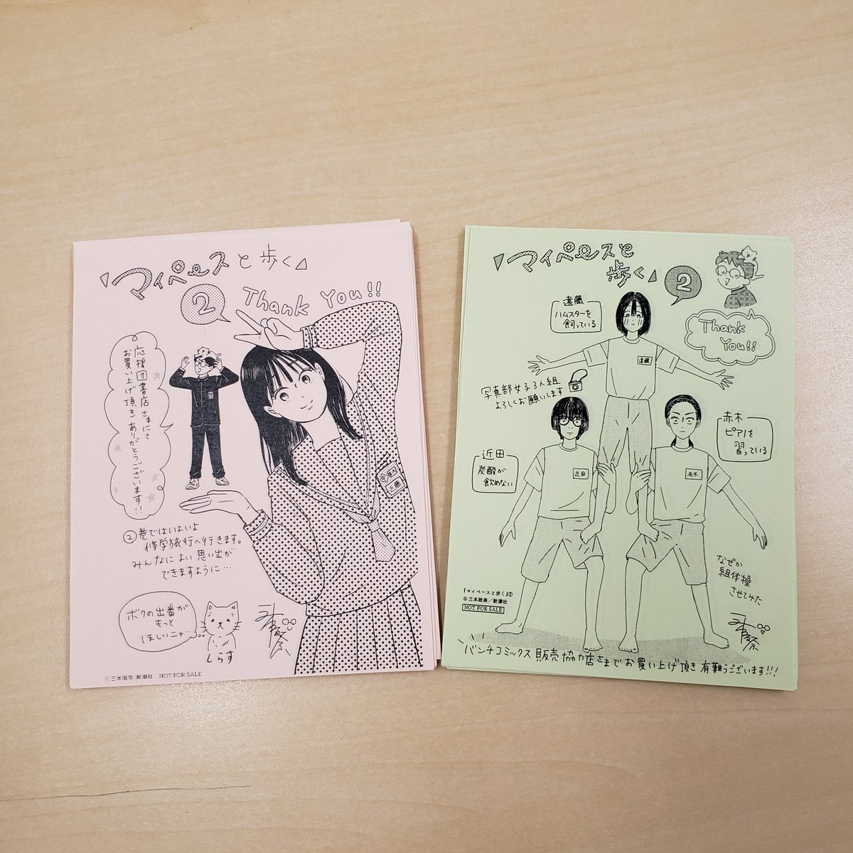 🎁コミックス特典情報🎁 『マイペースと歩く』2巻 丸善ジュンク堂書店チェーン限定の4Pリーフレットが付きます! これは、レアですよ~! まだ読んだことがない方も、試し読み冊子がありますので、是非店頭でハマっていってください🫶 #マイペースと歩く #三本阪奈 先生 pic.x.com/Pnz5Td3e21