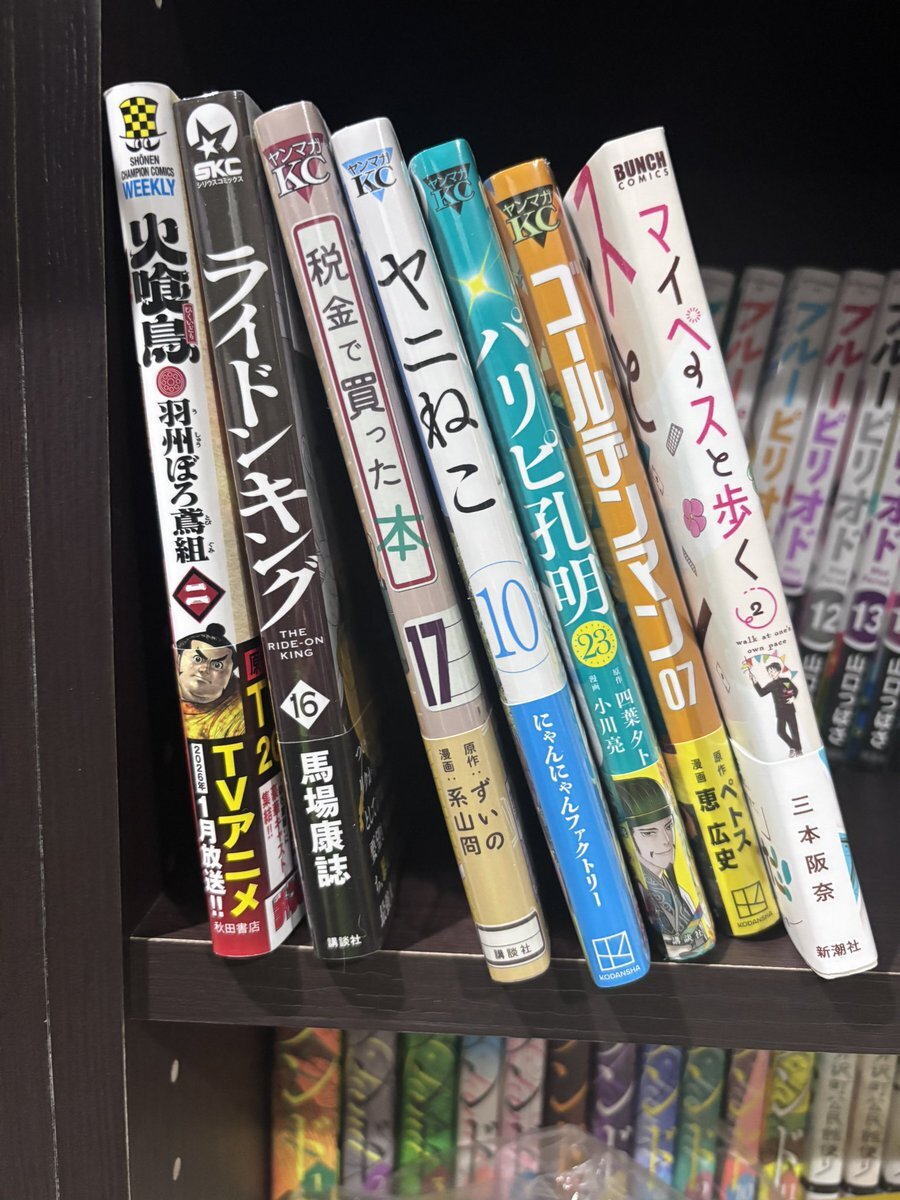 今日発売の新刊と 買い逃してた新刊と 77円セールしてた漫画を買った。 #マイペースと歩く 2巻 #パリピ孔明 23巻 #服を着るならこんなふうに 最終18巻 #オーイとんぼ 59巻 #バイオーグ・トリニティ 1-14巻 #天上天下 1-22巻 pic.x.com/RjKCZ3CkmD