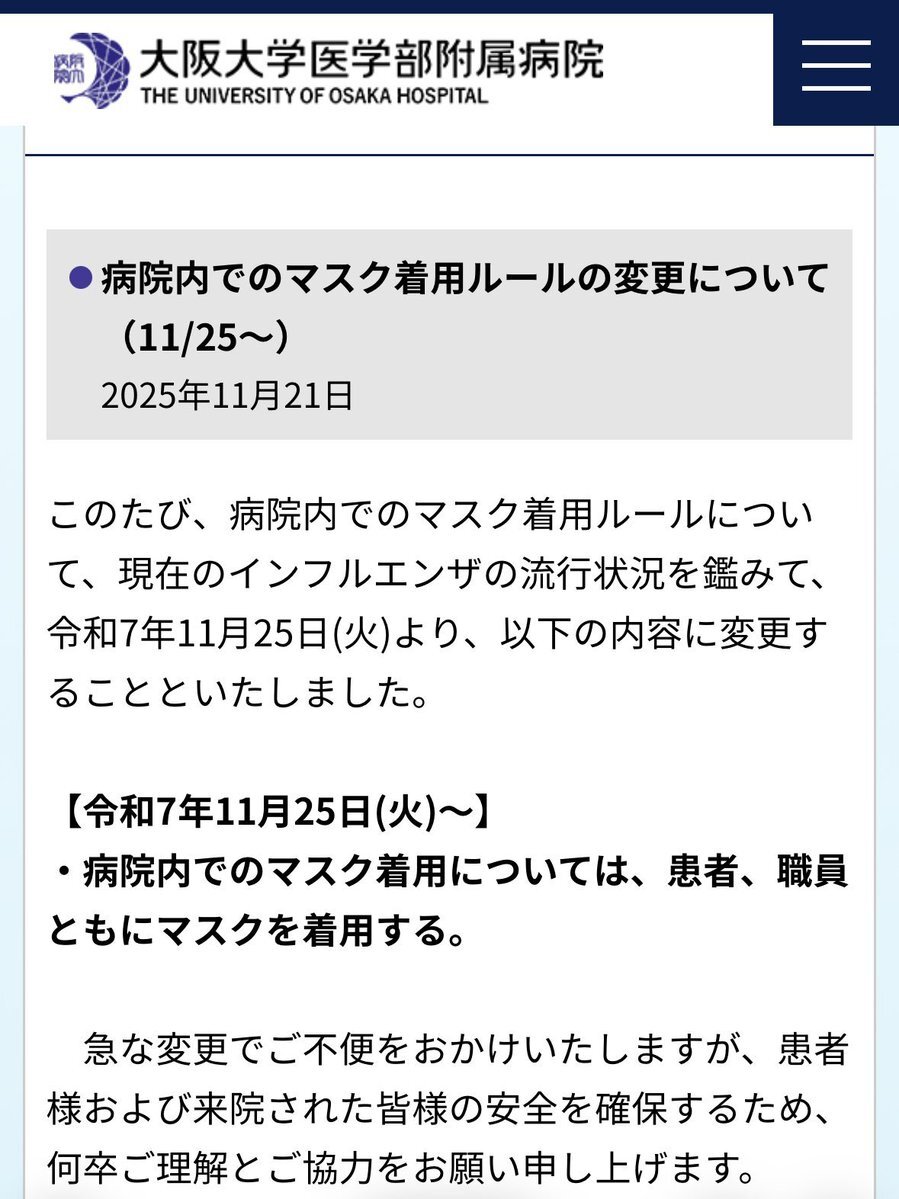人口の少ない地元の人は、ほとんどマスクをされています。 #インフルエンザ に感染する方が多いそうですが #新型コロナ に感染する人も増えているそうです。 #マスク着用 #マスク必須 【速報】インフルエンザ、全国で警報水準超え #47NEWS 47news.jp/13486911.html?… @47news_officialより