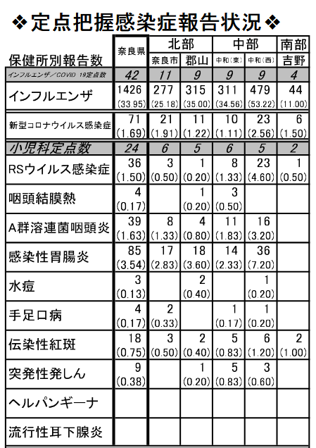 📢速報 感染症週報 #マスク常備 #マスク着用 【46週㊸=11月10日~16日(21日公表)なら県】 △新型コロナ定点当(前週1.38人)1.69人⤴️1.22倍 △インフル定点当(前週19.14人)33.95人🆘🆘⤴️1.77倍 ✅前週値は前週時 ✅感染症情報センター pic.x.com/Dnbyh4mmub