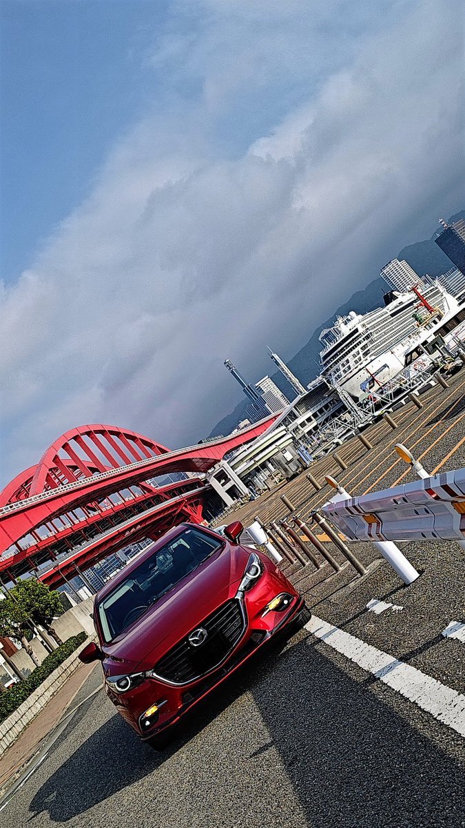 #これを見た人は愛車の背景が船の画像を貼れ 再掲。神戸大橋とポートターミナルに碇泊中の客船を背景に。 WEBで検索すると、この場所で撮られてる方もよくいらっしゃるようで。 また週末、撮りに行きたいなあ…。 #MAZDA #withmazda #みんな大好きソウルレッド #マツダ車のある風景 pic.x.com/O92mCsZ8jk