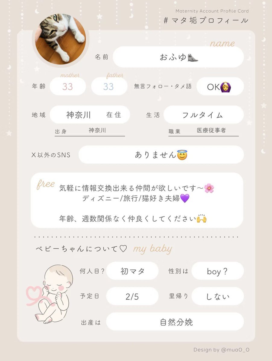 マタ垢プロフィール作りました〜🌸 初マタ👶🍀 プレママさん、ママさんと情報交換したいです💜 仲良くしてください🙌 #マタ垢プロフィール #マタ垢プロフィールカード #マタ垢さんと繋がりたい #ママ垢さんとつながりたい pic.x.com/i0BFYOxNym