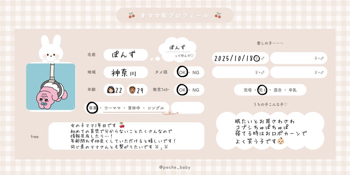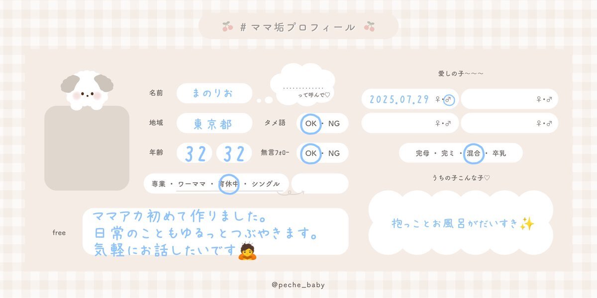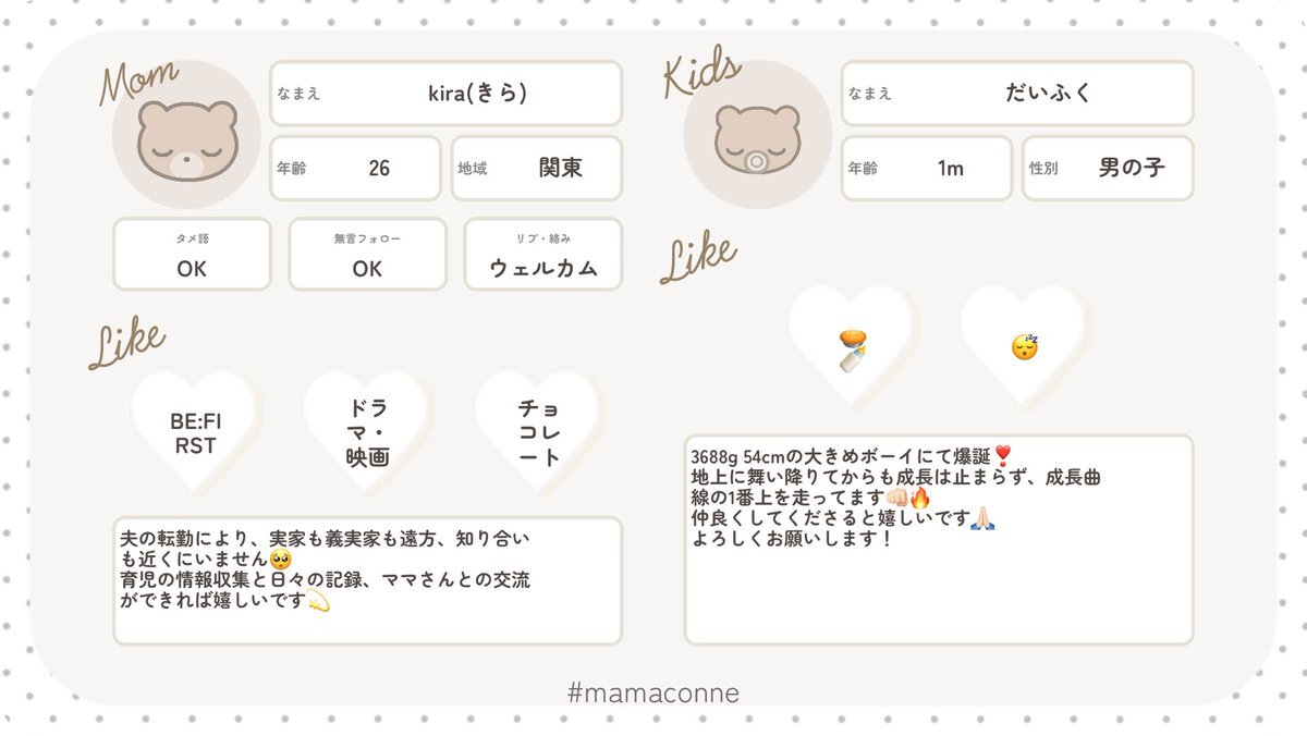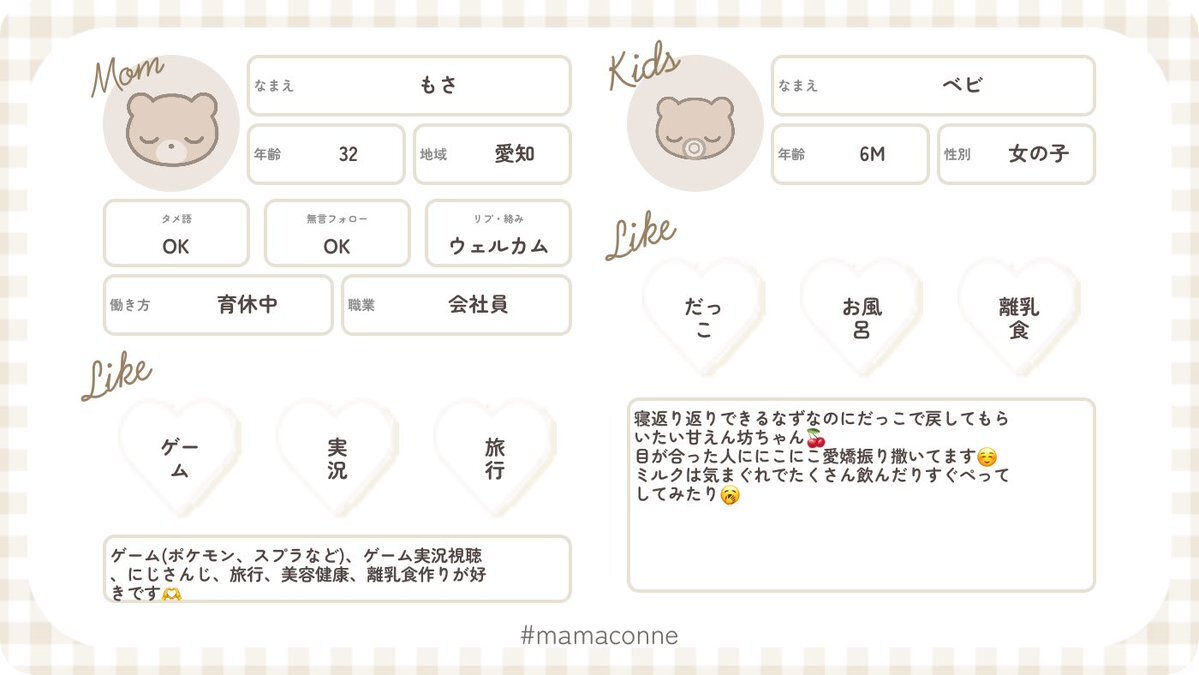 最近ママ垢作りました( ◜ᴗ◝ ) ♡でお迎えさせていただきます🫶🏻 ルール等よく分かりませんが仲良くしてください🙇🏻‍♀️🪄︎︎◝✩ #ママ垢プロフィールカード #ママ垢プロフィール #ママ垢さんと繋がりたい pic.x.com/K3AXSc1lua