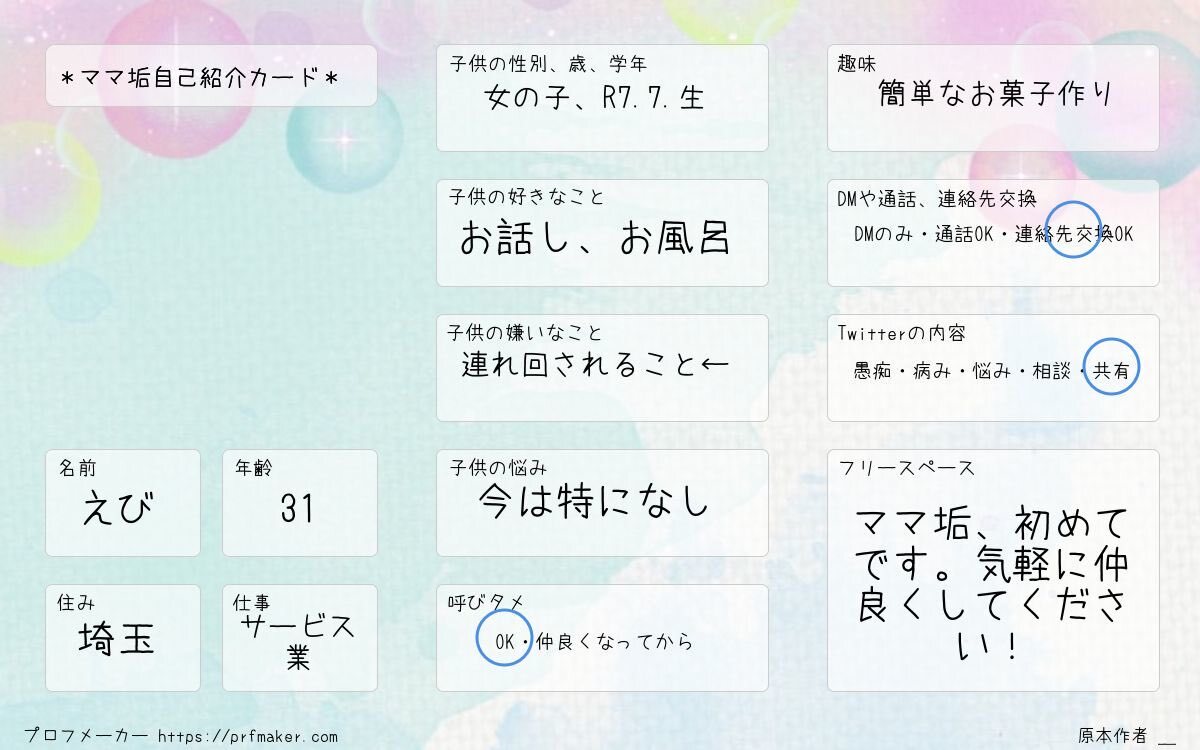 えび🦐です! テキトー人間👩🏻 ゆる〜く、のんびりと育児してます٩( ᐛ )و 年齢性別問わず、仲良くしてください✨ #ママ垢さんと繋がりたい #ママ垢プロフィールカード pic.x.com/oiNhfSnK1l