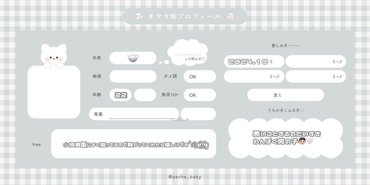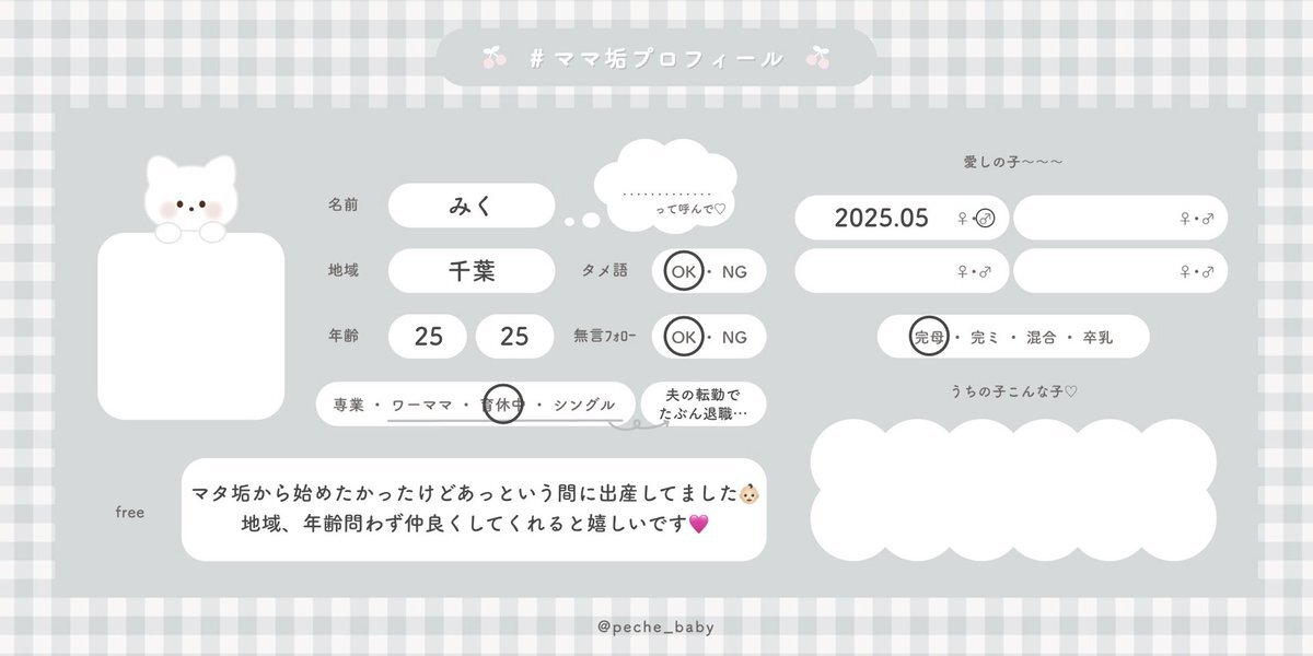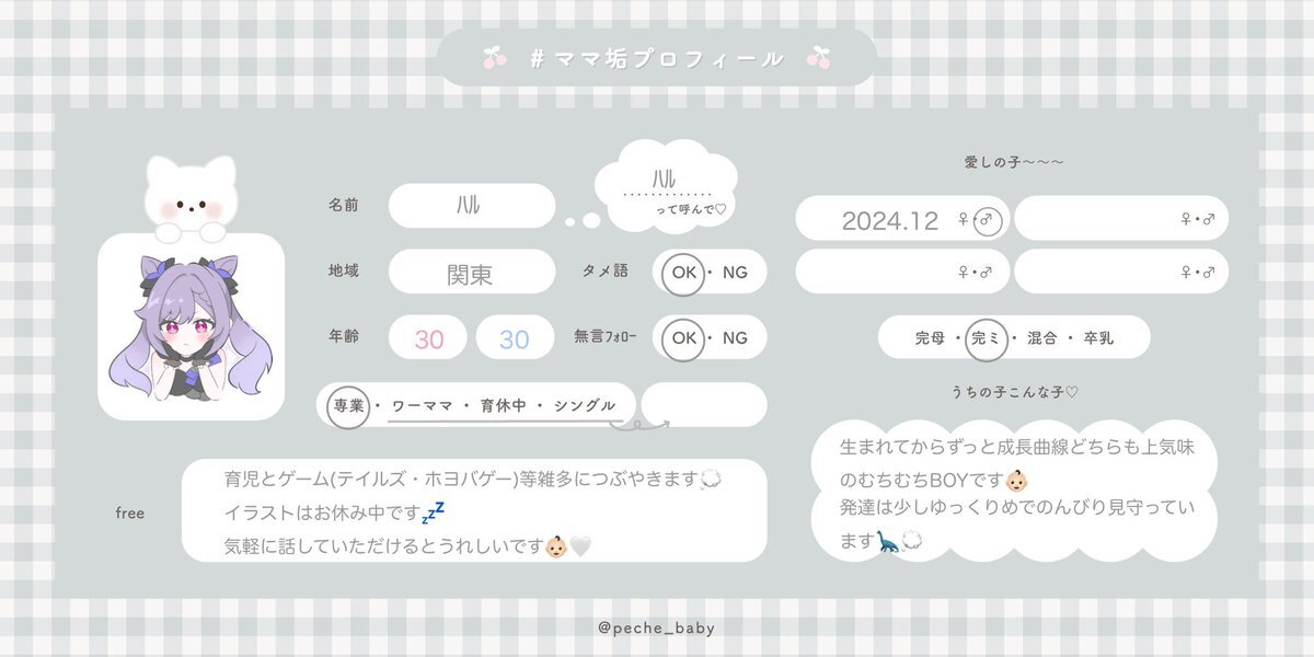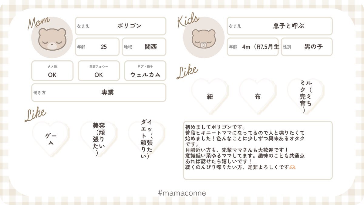 @null しばらくログアウトしちゃってたのでまたタグ出します 99 / R6.2 🎀 #ママ垢さんと繋がりたい #ママ垢プロフィールカード x.com/_ear1gray/stat…