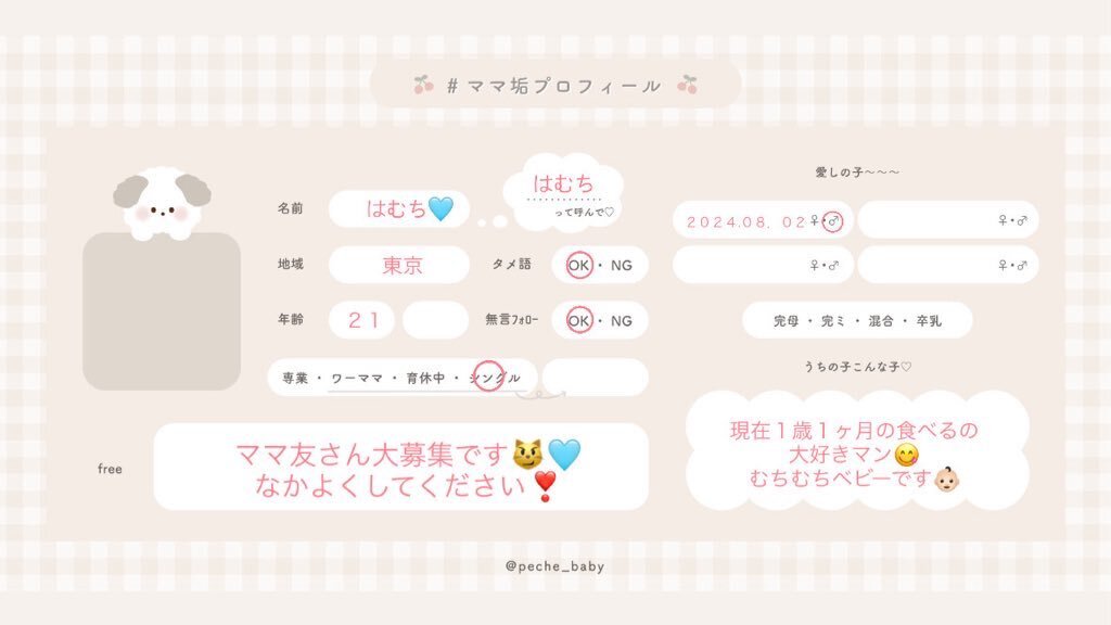 いいねでお迎え行きます! よろしくお願いします🙇♀️ #ママ垢プロフィールカード #ママ垢プロフィール #ママ垢 #マタ垢さんと繋がりたい #ママ垢さんと繋がりたい pic.x.com/eopa6BYNqg
