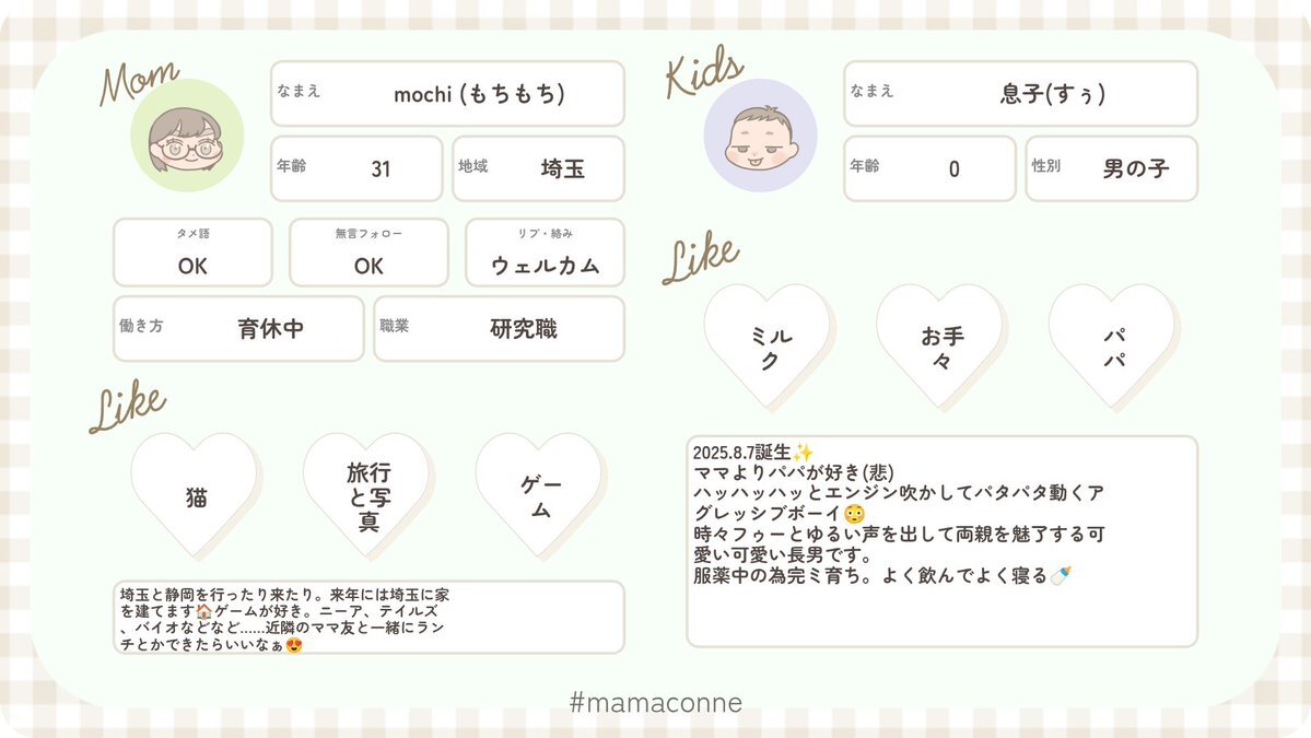 ママ友欲しくて始めました❁.*・゚ 気軽にリプ送ったりしたい!! 無言フォロー大歓迎&♡でお迎え行きます◡̈* よろしくお願いします🧸💚🩷 #ママ垢プロフィール #ママ垢プロフィールカード #ママ垢さんと繋がりたい #令和5年ベビー #令和7年ベビー #男の子ママ #女の子ママ pic.x.com/Y7LEaBHDRt