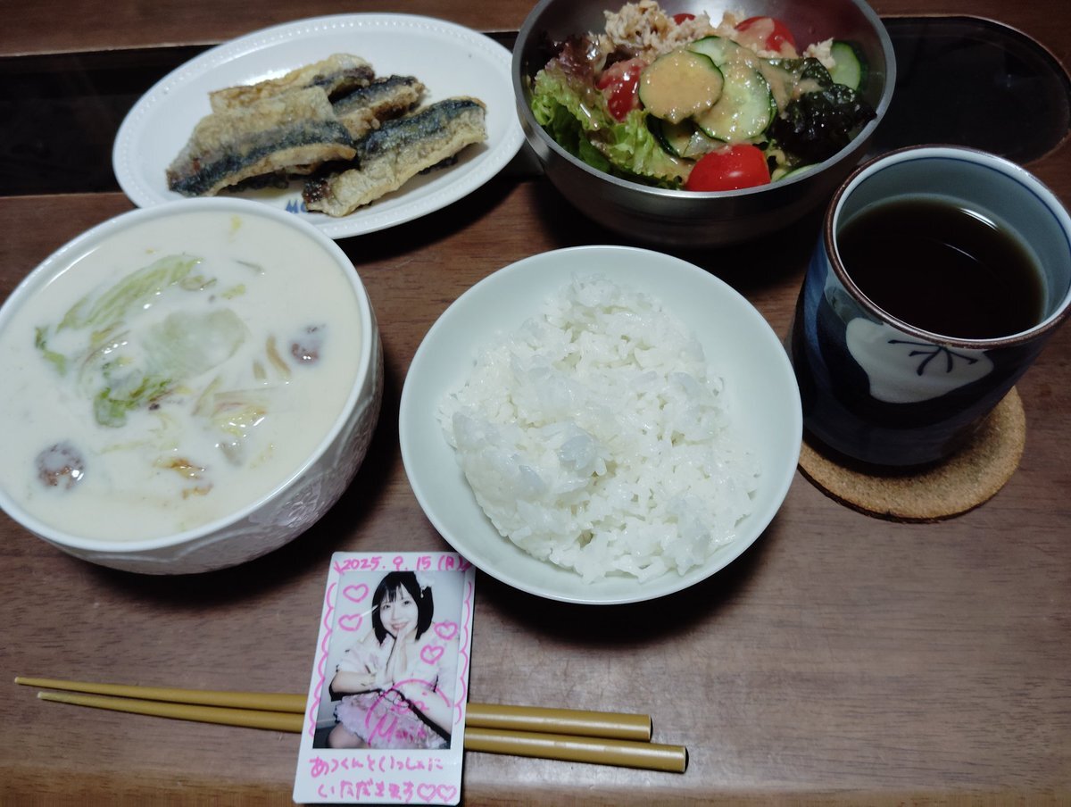 今日の晩ご飯は肉団子と白菜のクリーム煮とアジのムニエル、サラダ🥗 うまし‼️‼️‼️晩ご飯だよマリアちゃん(⁠◍⁠•⁠ᴗ⁠•⁠◍⁠)⁠❤ #マリアちゃん今日も生きててえらい pic.x.com/LOhTKodDcm