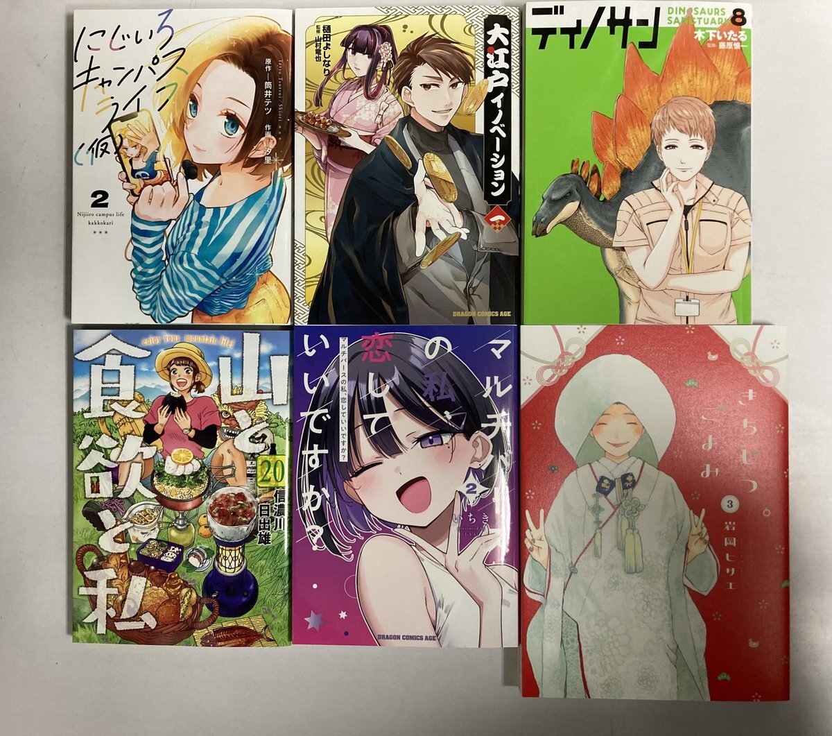 本日の新刊コミックです☺️ #にじいろキャンパスライフ(仮)(2) #大江戸イノベーション(1) #ディノサン(8) #山と食欲と私(20) #マルチバースの私恋していいですか(2) #きちじつごよみ(3) 皆さまのご来店お待ちしております! #自遊空間 #荻窪 pic.x.com/RfaiPXftTY