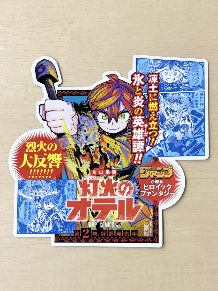 熊本出身の漫画家 #川口勇貴 先生が描く、属性系冒険バトルマンガ「#灯火のオテル」2巻が発売されたにゃ!! #週刊少年ジャンプ さんから発売記念プレゼントがあるごたるよ! 応募せにゃんし、買って読まにゃんよ! #マンガ県くまもと x.com/jump_henshubu/…