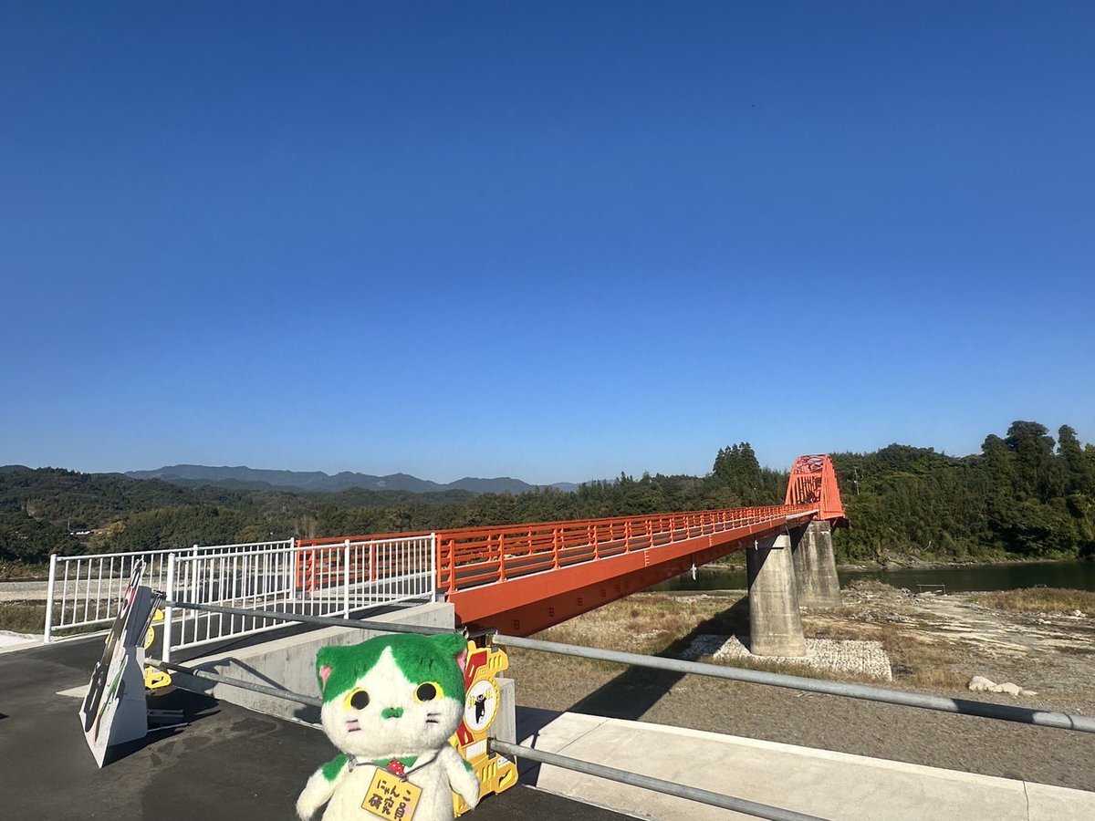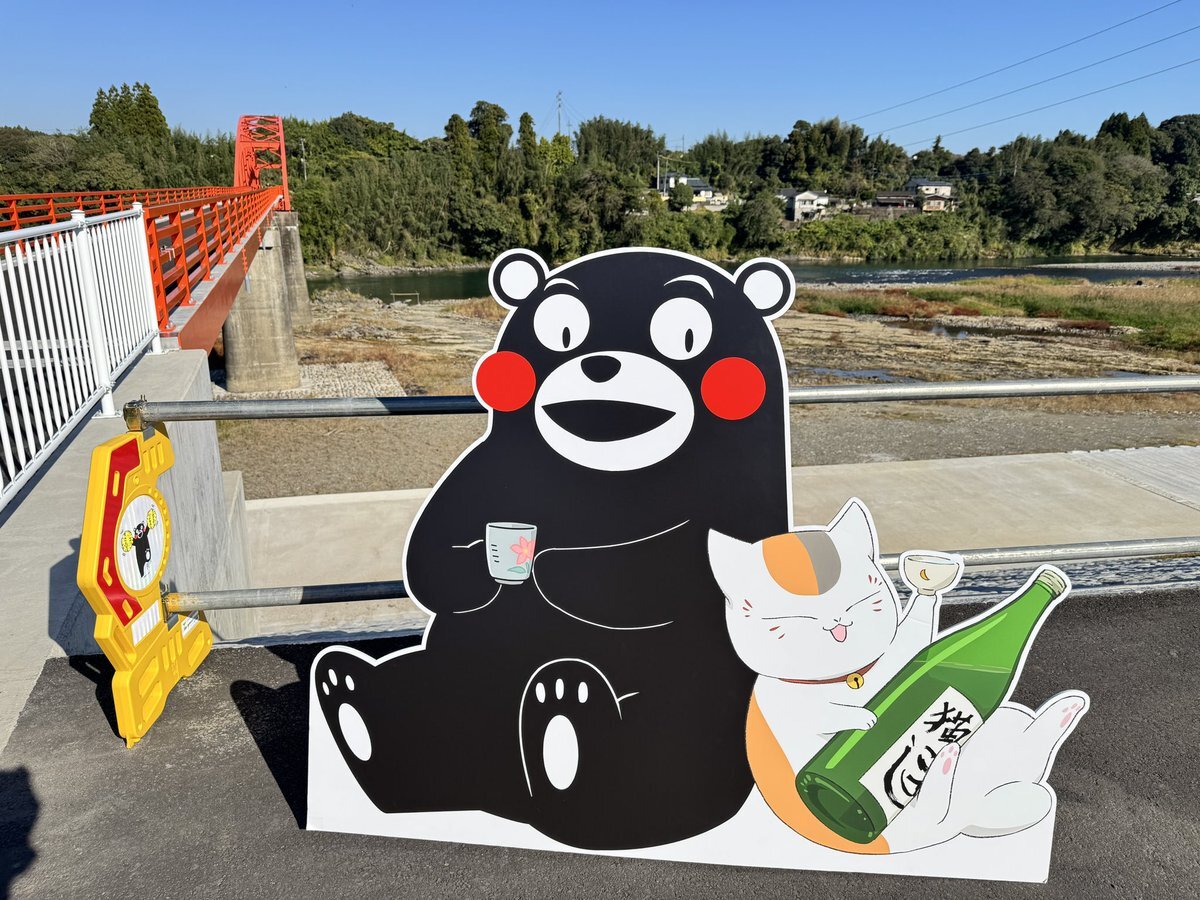 渡り初めもしてきたにゃ! 真っ青な空 透き通った川 そこにオレンジが映える天狗橋。 みんな、人吉に遊び来てにゃー! #夏目友人帳 #マンガ県くまもと #人吉 pic.x.com/dw7AWPG7r9