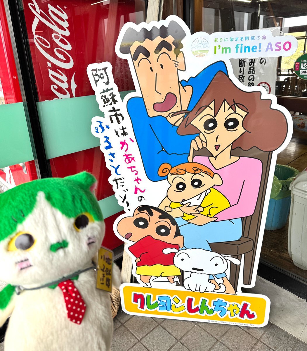 阿蘇の #大観峰 には、アニメ「#クレヨンしんちゃん」のパネルが飾ってあるにゃ! これから冬本番!どんどん寒くなるけど、しんちゃんは半ズボンで寒くないかにゃ!? にゃんこはネクタイだけだけど毛皮で覆われてます(シロも)。 #マンガ県くまもと pic.x.com/C9bdrFJsV3