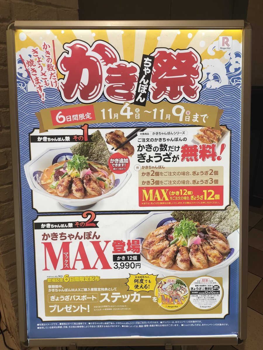 #マークイズみなとみらい のフードコート #リンガーハット で #かきちゃんぽん 今なら『かき』の数だけ『ぎょうざ』をもらえた🤣 11/4(月)~11/9(日) 6日間限定 pic.x.com/UdYiUQ8WRc