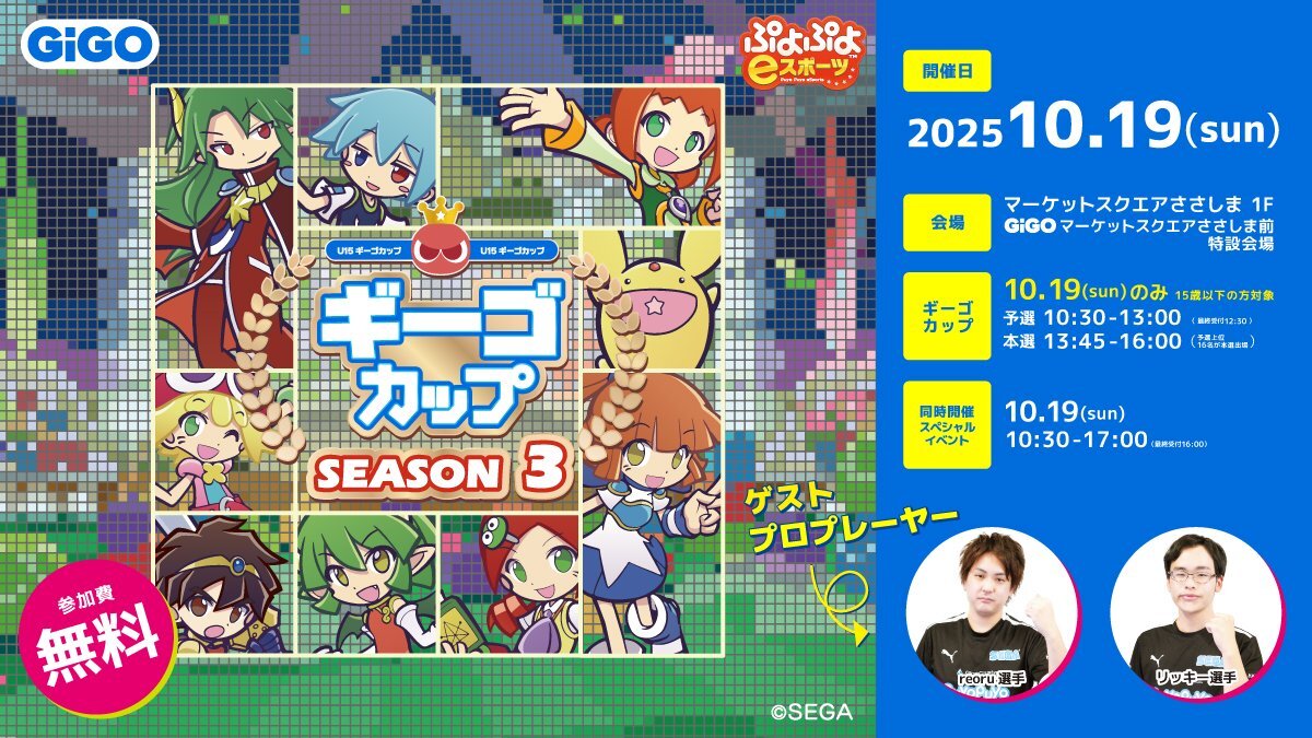 【お知らせ】 本日開催‼ 「 #ぷよぷよeスポーツ U-15 ギーゴカップ」SEASON3 第7戦を「#マーケットスクエアささしま」にて開催‼ 現在、決勝トーナメント進出をかけた予選会を実施中です‼愛知県周辺のぷよらーは集まれ~~~~😍 #GiGOマーケットスクエアささしま #GiGO pic.x.com/8BMUEFxZfo x.com/GiGO_WS/status…
