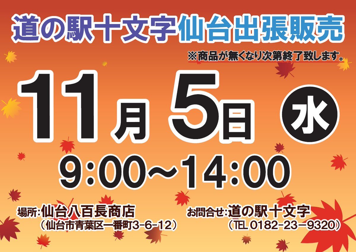 11/5(水)は、仙台 #マーブルロードおおまち商店街#八百長商店 さんを会場に #道の駅十文字 による出張販売を行います!#横手 の秋の味覚をたくさん取り揃えて皆様のお越しをお待ちしております!11/7~9に開催する「リトルよこてin仙台」とのコラボ企画もあるとかないとか!? #横手愛 #yokote pic.x.com/9V6fMa02yz
