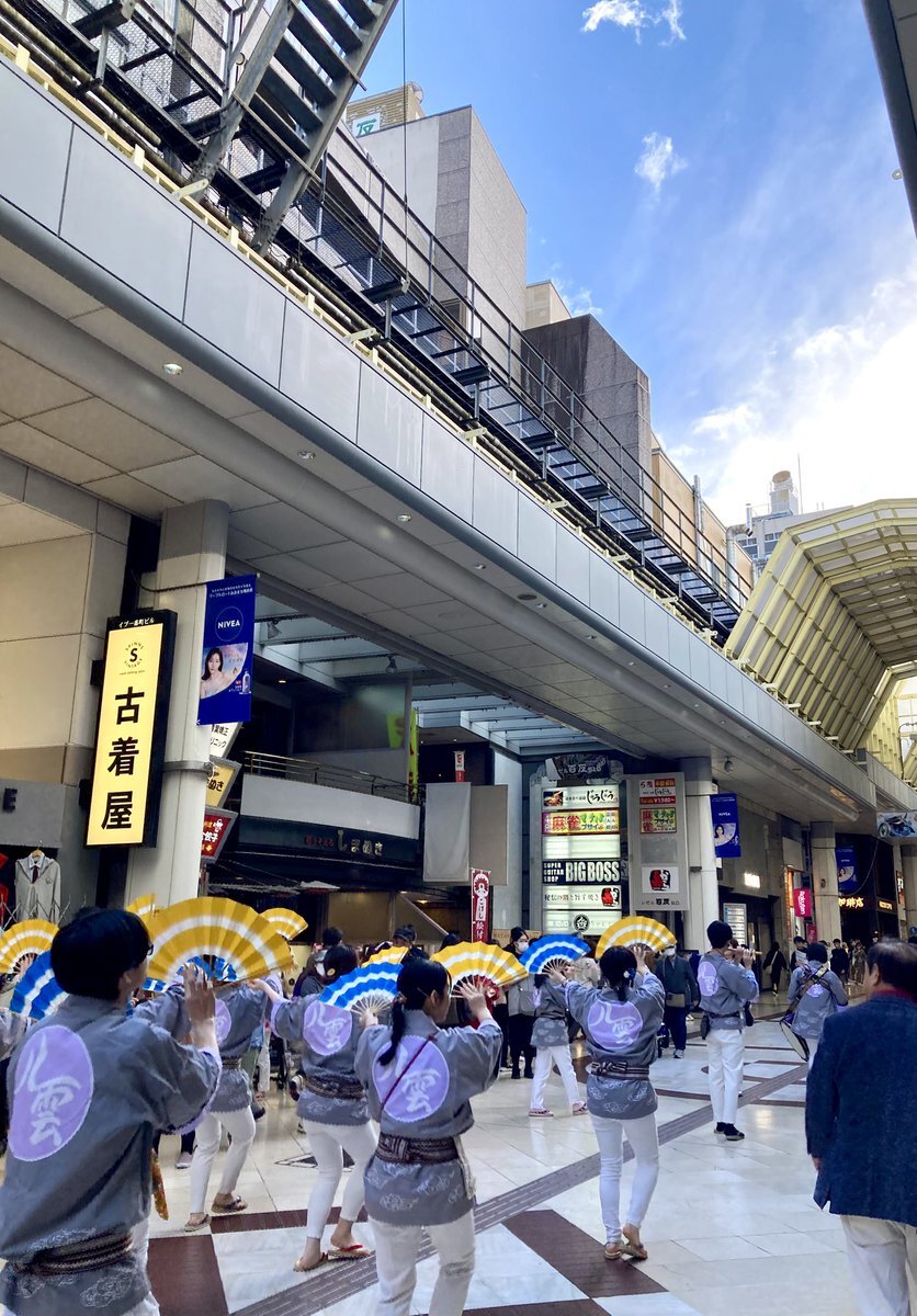 今日は仙台市の 青葉区民まつり おおまち商店街のしまぬき前を すずめ踊りが流していきます。 アーケードの屋根が開いているので、とってもさわやか🍁 はらこ飯のキッチンカーも出てますよー! #仙台 #すずめ踊り #はらこ飯 #マーブルロードおおまち商店街 pic.x.com/lum0vUQlXW