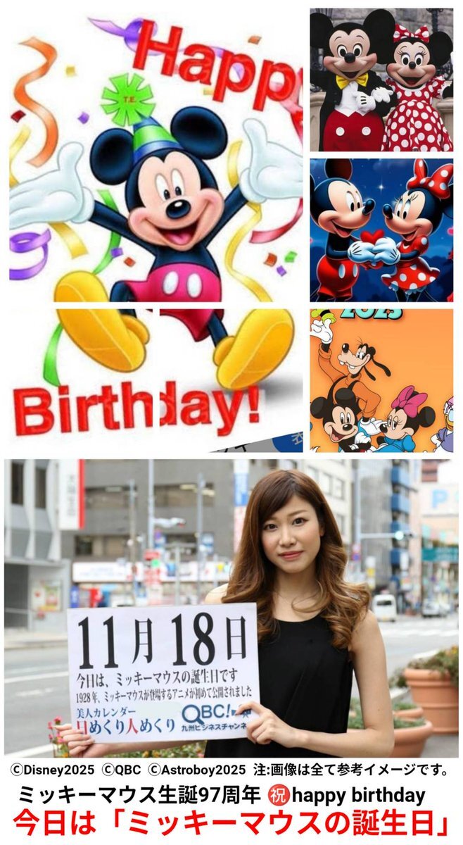 おはようございます🙋♂️🌺🐦 こんばんは🤗🎵🎶 何時もありがとう🤗 今日は11月18日(火)「#ミッキーマウスの誕生日」。1928年(昭和3年)、ニューヨークのコロニーシアターでミッキーマウスが登場する短編アニメーション「#蒸気船ウィリー」が初めて公開され大成功しました。 今日は97歳の誕生日です。 pic.x.com/Dausc0004Z