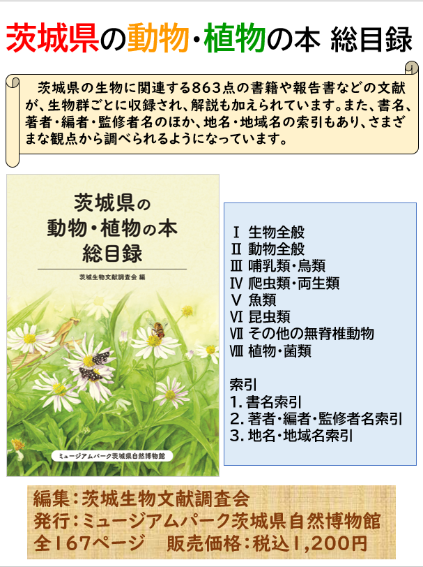 「茨城県の動物・植物の本 総目録」が、茨城生物文献調査会編集のもと製作されました。 価格は1,200円(税込)、ミュージアムショップで販売中です(店頭販売のみ)。 #ミュージアムパーク茨城県自然博物館 #茨城県の動物 #茨城県の植物 #総目録 pic.x.com/CBRmzifKR6