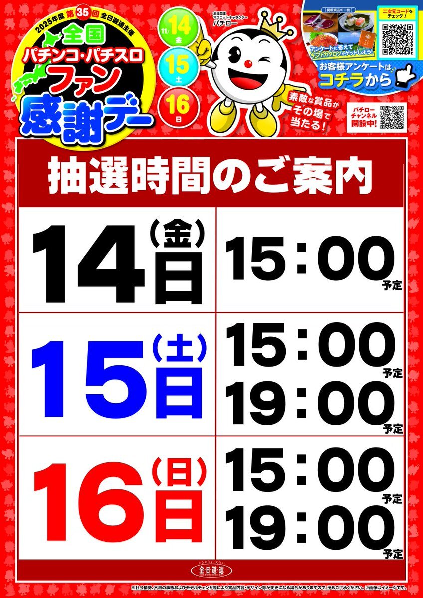 ✨11月14日(金)✨ ✨朝9時開店【抽選8時40分】✨ 🎊2025年度第35回全国ファン感謝デー🎊 🎊初日は15時より抽選予定🎊 🎁ステキな賞品がその場で当たる🎁 ご来店お待ちしております😀 #メガガイア #一宮 #ファン感 pic.x.com/kD5GNiS3Sf