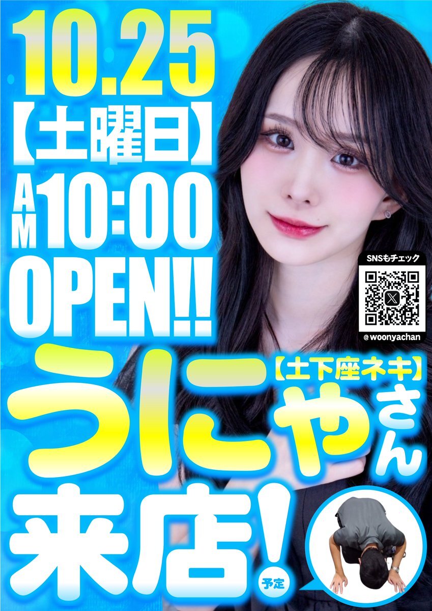 🎵本日1⃣0⃣月2⃣5⃣日(土)🎵 ✨10時OPEN✨ 🎉うにゃさん来店🎉 ➡️@woonyachan⬅️ ミッションの方は達成なるか(。-`ω-) ドキドキですね(*´▽`*) 当店の店長アカウントはこちら ➡@nanadaime202507 🎵#週末 は是非 #明大前 へ🎵 🐈⬛朝一番のご来店お待ちしております🐈⬛ #共闘 #メガガイア pic.x.com/FvO4DrqBMr