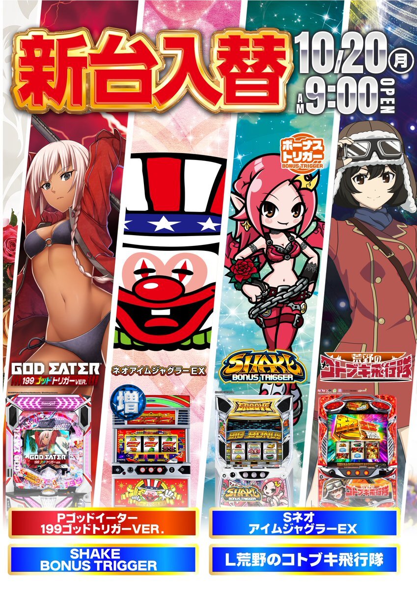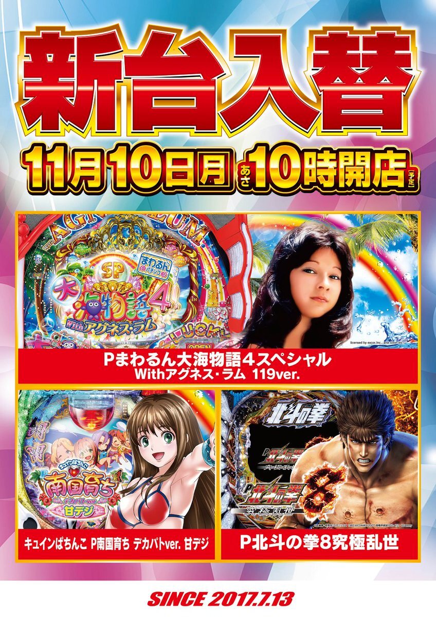本日11月1日(土) このあと ⏱10時OPEN⏱ \11月突入‼️/ 👊11月も継続オススメ!!👊 Pヱヴァ明日への咆哮 🔥共闘月間🔥 店内告知にも注目😀 【お車でご来店のお客様へ】 🐈提携駐車場ございます🐈 ※詳細は店舗HPにてご確認ください! #明大前 #メガガイア pic.x.com/n4ZO21qPbM