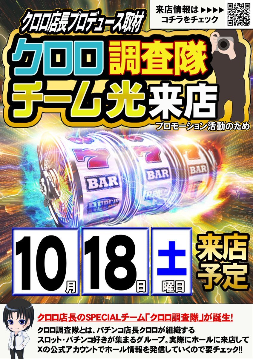 ✨10月18日(土)✨ ✨朝9時開店【抽選8時40分】✨ 🎊#クロロ調査隊チーム光来店🎊 ※プロモーション活動の為‼️ 🆕最新機種のご案内🆕 #Pスーパー海物語IN沖縄6 🔥地域最大級🔥 #L新鬼武者3 #L主役は銭形5 ご来店お待ちしております😀 #メガガイア #一宮 #クロロ pic.x.com/2t2d8pQPlz