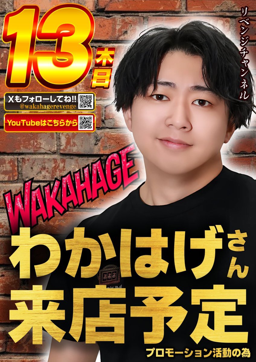 👑 👑 👑 👑 👑 👑 11月13日(木)朝9時開店 【抽選8時40分】 ✨✨感謝✨✨ ✨Since2017.12.13✨ 👑 👑 👑 👑 👑 👑 【#リベンジチャンネル】 🎊#わかはげ さん🎊 ※プロモーション活動の為、来店‼️ ご来店をお待ちしております😀 #メガガイア #一宮 #来店 pic.x.com/DLaL6yUSNN