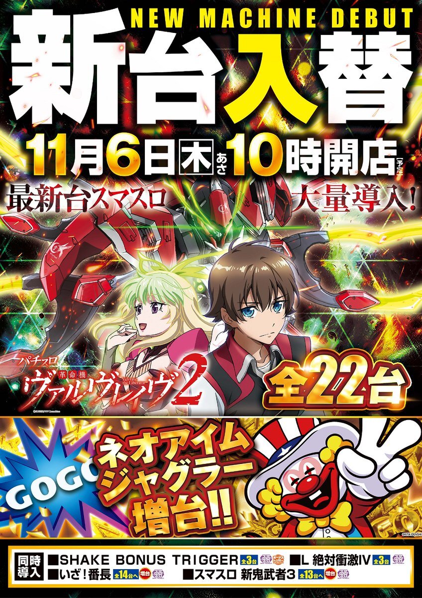 こんばんは🌛 #メガガイア岩槻店 です😎 明日1⃣1⃣月5⃣日(水)は 新台入替準備の為、 ⚠️店休⚠️とさせて頂きます🙇 お間違いの無い様、お願い致します。 明後日1⃣1⃣月6⃣日(木)は #新台入替 初日となります‼️ 話題の最新台多数導入‼️ #ヴァルヴレイヴ2大量導入 #ネオアイム増台 #新鬼武者増台