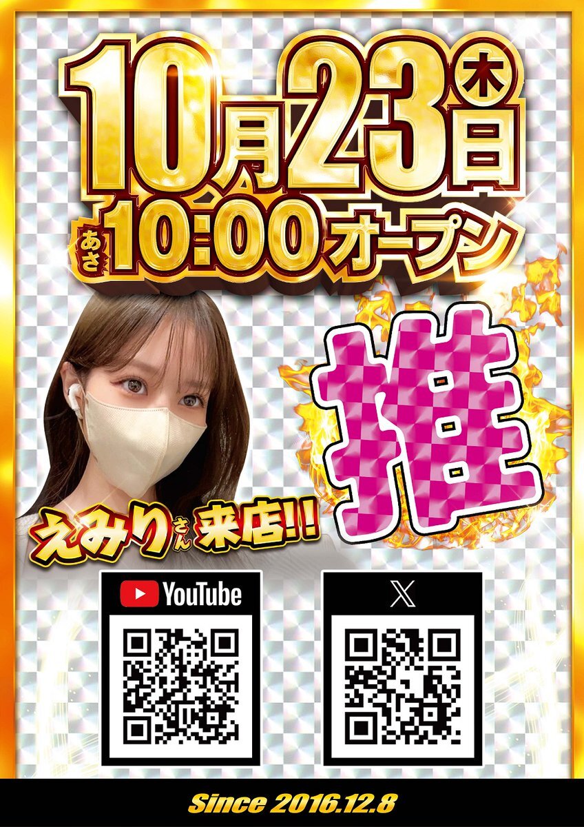 #メガガイア岩槻店 です🌹 明日1⃣0⃣月2⃣3⃣日(木)朝10時開店⏰ 💖当店の🎊推し🎊💖 ⚙️#えみり さん⚙️ 💖X→@emiri8586 💖           来店予定ですっ😍 オンライン入場受付は9:30迄📱 受付こちら➡️x.gd/WjJcM #えみりは今日もパチスロ #感謝 pic.x.com/5n0QklvfZB