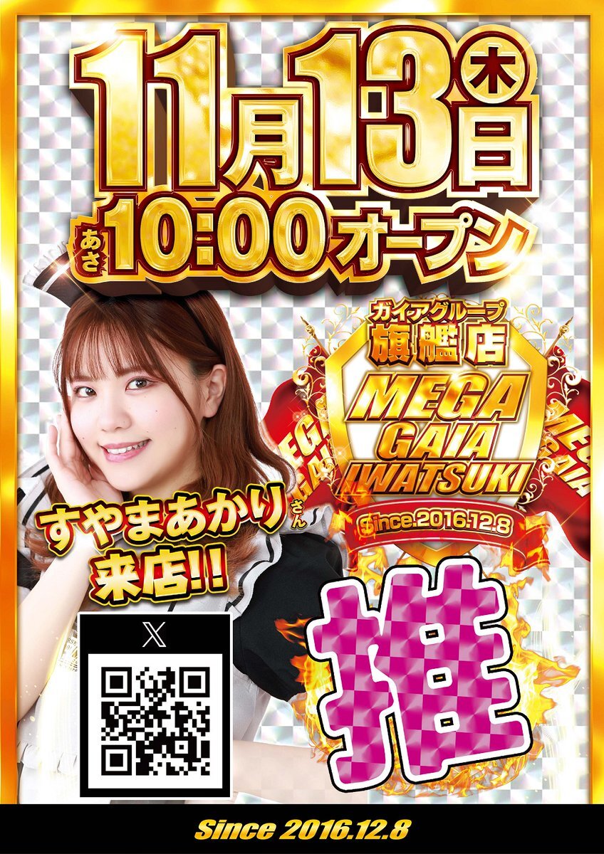 #メガガイア岩槻店 です🌹 明日1⃣1⃣月1⃣3⃣日(木) 朝10時開店⏰ 🎉🎉当店の推し🎉🎉 🍒#すやまあかり さん 来店予定😍🍒 🍒X➡️@1ssuaka6🍒 オンライン入場受付は9:30迄📱 受付こちら➡️x.gd/WjJcM #すやまあかり さん #感謝 pic.x.com/8UHdQcuyqy