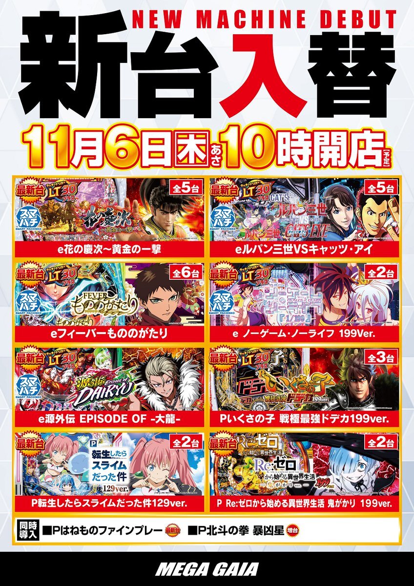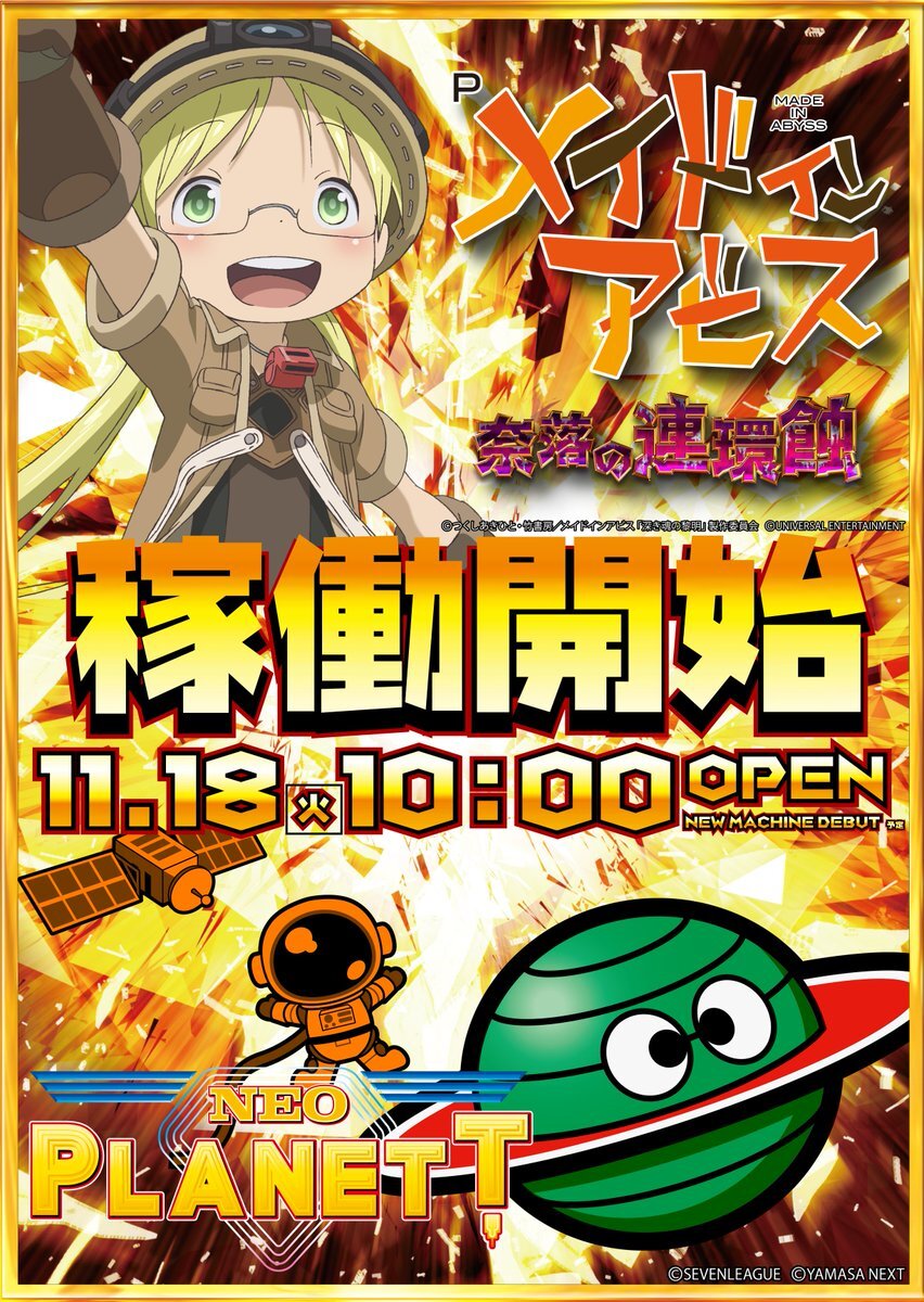 こんばんは #メガガイア岩槻店 です 明日の11月18日(火)も 通常どおり朝10:00開店‼️ 🚨今月は残り、休まず営業致します‼️🚨 そして パチンコ新台 #Pメイドインアビス奈落の連環蝕 スロット新台 #スマスロネオプラネット 稼働開始🔥 皆様のご来店お待ちしております🙇‍♂️ pic.x.com/k0U1BVJgP2