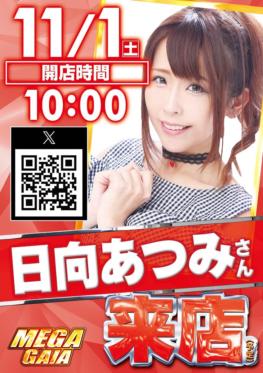 #メガガイア岩槻店 です 明日1⃣1⃣月1⃣日(土) 朝10時開店⏰ 💖#日向あつみ さん💖 お久しぶりの来店です😍 X➡ @atsumi919           オンライン入場受付は9:30迄➡️x.gd/WjJcM #日向あつみ さん pic.x.com/ZEFIJZ9NdA