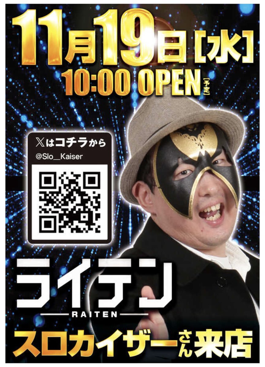 #メガガイア岩槻店 です😆 明日1⃣1⃣月1⃣9⃣日(水)朝10時開店⏰ ✨✨✨✨✨✨ ライテン取材!!!!! ✨✨✨✨✨✨ 人気ライターの 《#スロカイザー さん》 来店予定!!!!!!!!!!!!!!!!!🌈 X➡@Slo_Kaiser オンライン入場受付は9:30迄📱 #スロカイザー さん #ライテン #感謝 pic.x.com/YK4toYD2tE