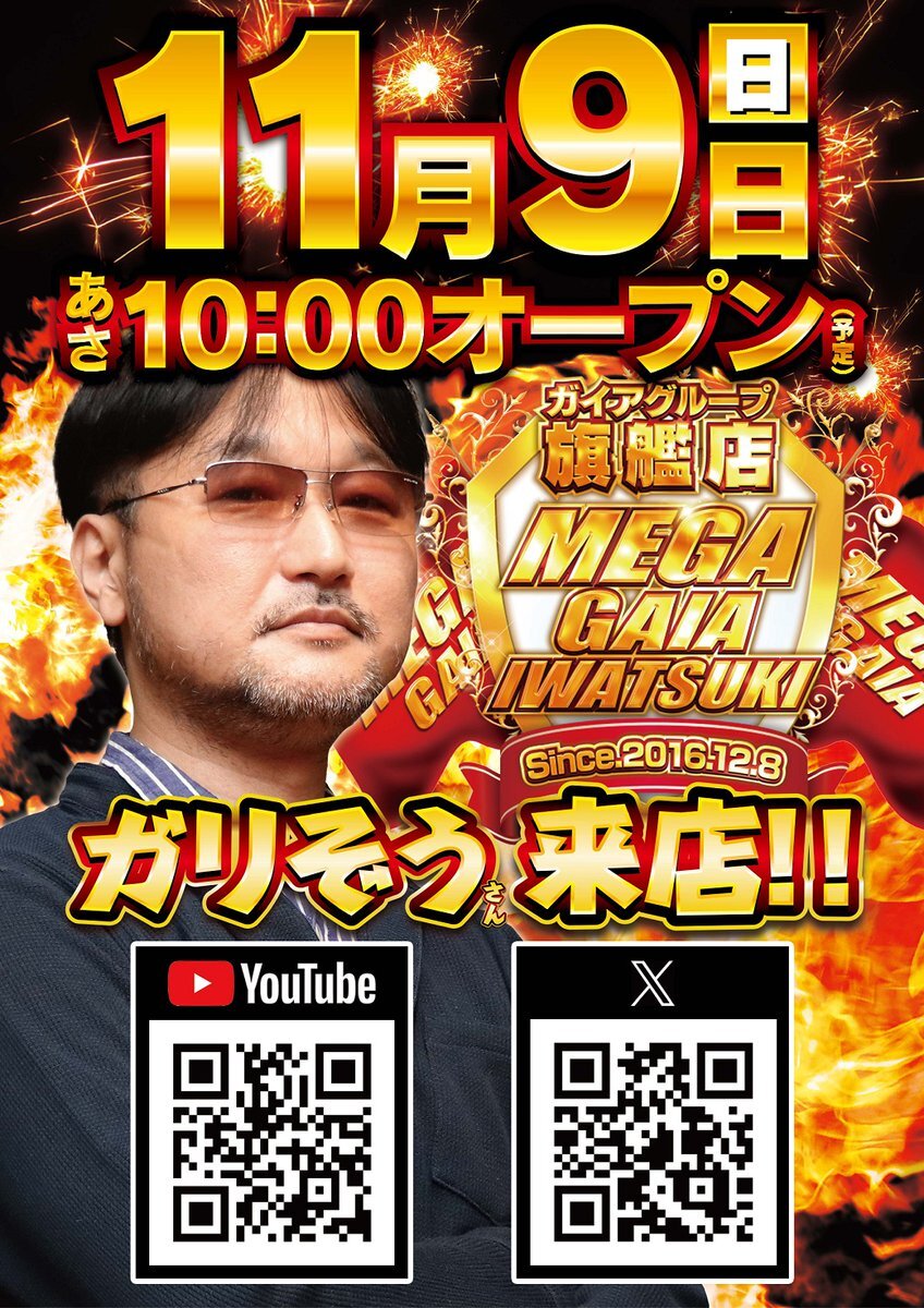 #メガガイア岩槻店 です🌹 明日1⃣1⃣月9⃣日(日)朝10時開店⏰     😎#ガリぞう さん😎      😎X➡ @garizo2 😎                😎来店予定😎 オンライン入場受付は9:30迄📱 受付こちら➡️x.gd/WjJcM #ガリぞう さん #感謝 pic.x.com/cUK2fNboqK