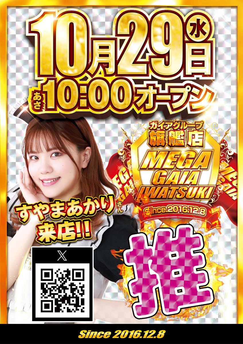 #メガガイア岩槻店 です🌹 明日1⃣0⃣月2⃣9⃣日(水) 朝10時開店⏰ 当店の🎉🎉推し🎉🎉 🍒#すやまあかり 🍒 さん来店予定😍 🍒X➡️@1ssuaka6🍒 🐸今月2回目のご来店ですっ‼️🐸 オンライン入場受付は9:30迄📱 受付こちら➡️x.gd/WjJcM #感謝 pic.x.com/un9W9wlyNM