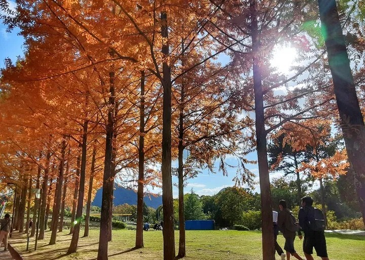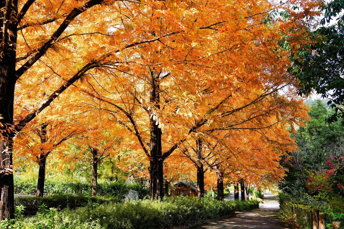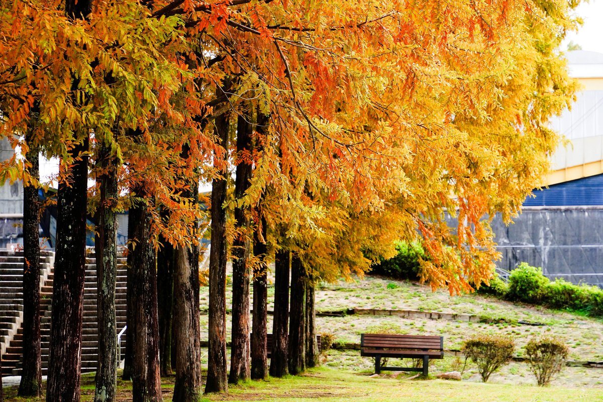 11/12(水)15時のメタセコイアの様子です。スロープ前の数本の木が黄色からオレンジに色づいてきました。 #横倉山自然の森博物館 #高知県 #越知町 #横倉山 #仁淀川 #紅葉情報 #メタセコイア pic.x.com/qAXTDpDPC1