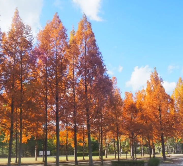 きれいな青空が広がっています☀ #メタセコイア (アケボノスギ)の 葉が全体的に色づいてきれいです🍂 #紅葉 のピークは例年11月下旬ごろです📸🥰 🌟土日祝はライトアップ実施(日没~20:30) #トーベ・ヤンソンあけぼの子どもの森公園 #あけぼの子どもの森公園 #飯能市 #はんのう #hannocity pic.x.com/4zrqt0qzFP